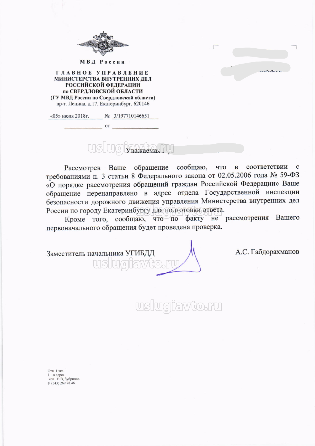 Вайс25 писал(а):26.05 написал обращение в главк. 27.05 обращение было зарегистрировано и передано в УГИБДД ГУ МВД России по Свердловской области Свердловской области.