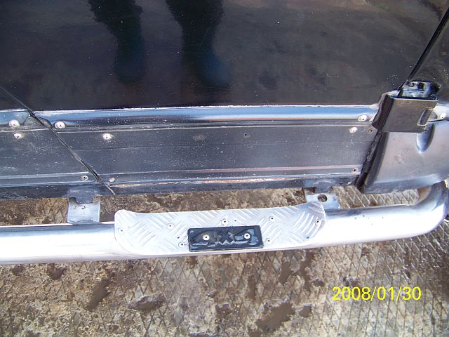 Установлены подножки во всю длинну кузова . Изготовлены из нержавеющей трубы D 58mm и толщиной стенки 3мм. Подножки крепятся к кузову посредством трёх кронштейнов сечением 10мм на 60мм ( нерж ) на болтах М12 * 1.25 в количестве 6 шт ( на одну подножку .