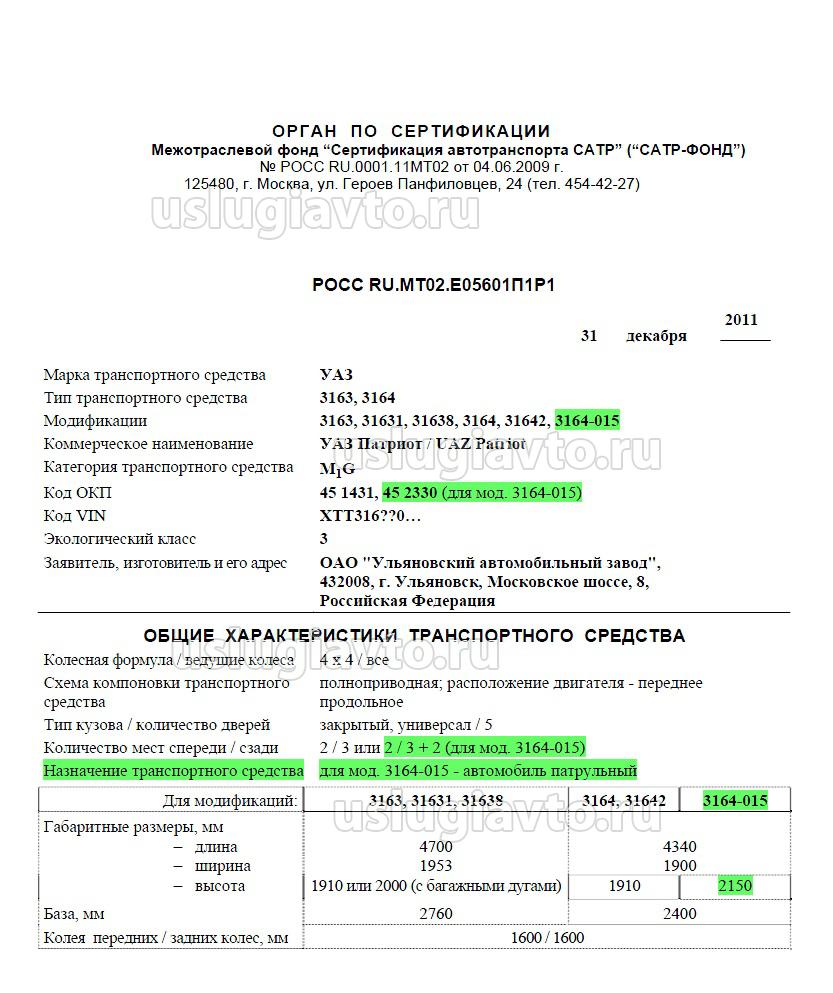 Во всех последних ОТТС (с сентября 2010г.), УАЗ Патриот / UAZ Patriot сертифицирован как: закрытый, универсал 5 (пять) мест. Есть семиместные версии, но они только для спецтранспорта. (см. вложение).