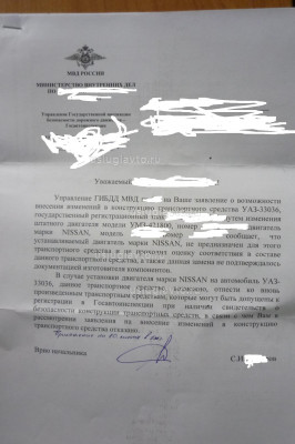 УАЗ-33036 писал(а):Вот такой ответ пришёл по-поводу замены ДВСа.