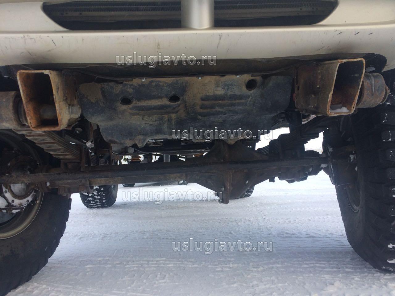 перед: установлен мост УАЗ, рессоры УАЗ, рулевые тяги УАЗ, тяга панара УАЗ, амморты TLC80, дисковые тормоза.