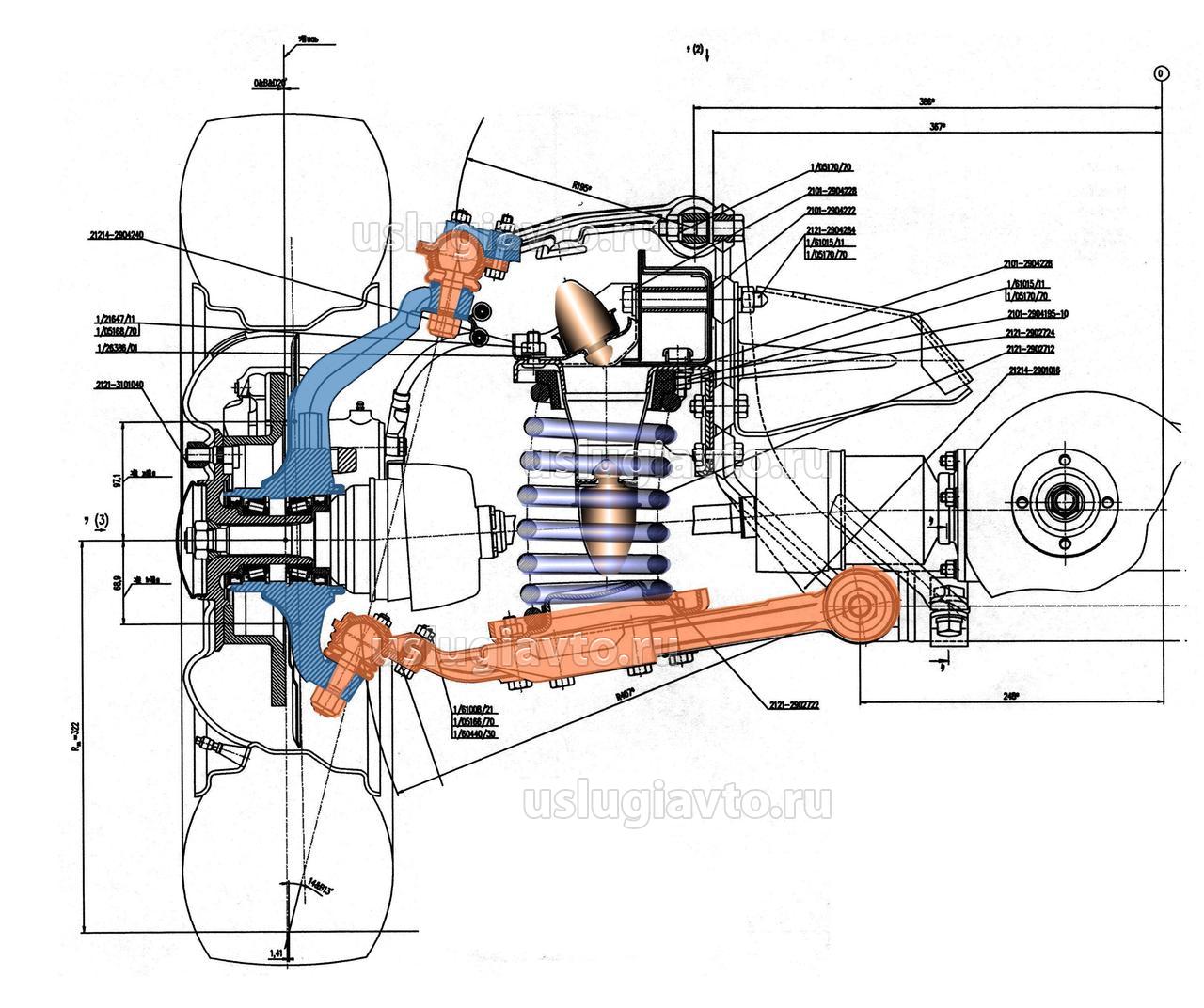 Схема передней подвески ВАЗ-21214