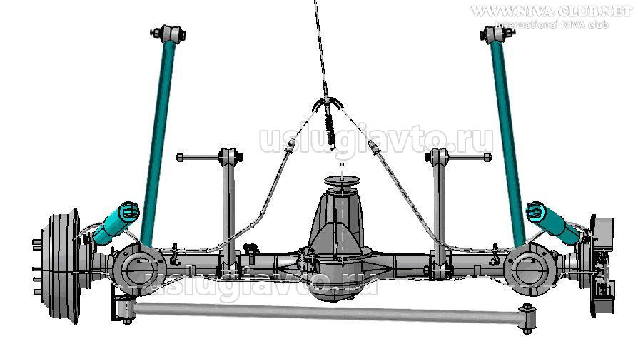 Задний мост заменяется на мост от ВАЗ-2123, задняя подвеска собирается по схеме ВАЗ-21214