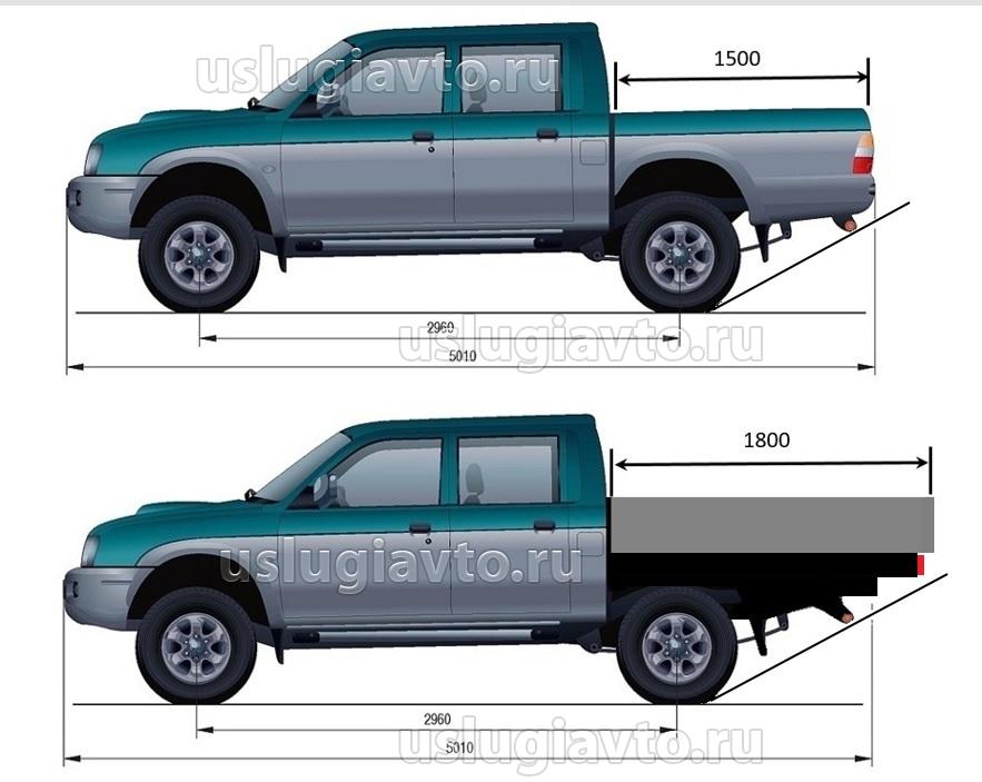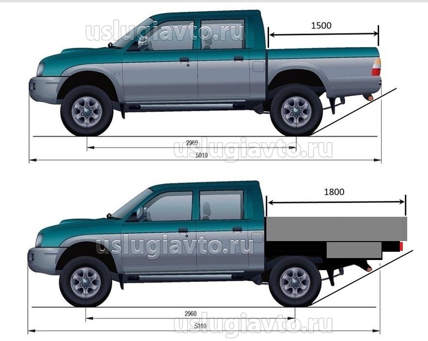 Дело в том, что я удлинение на 300 мм. брал не из головы, а исходя из длины подобный кузовов на серийных пикапах.