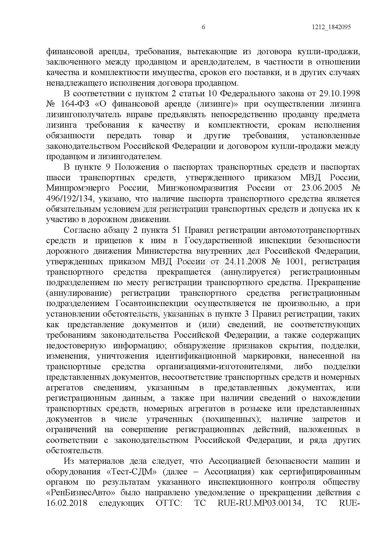 Сертификат соответствия ОТТС RUE-RU.MP03.00231 транспортного средства, выданный в отношении транспортного средства, переданного в лизинг истцу, аннулирован. Регистрирующий орган, действуя в рамках предоставленных ему полномочий, признал недействительным паспорт транспортного средства 18OP4472353, аннулировал регистрацию транспортного средства и снял его с регистрационного учета.