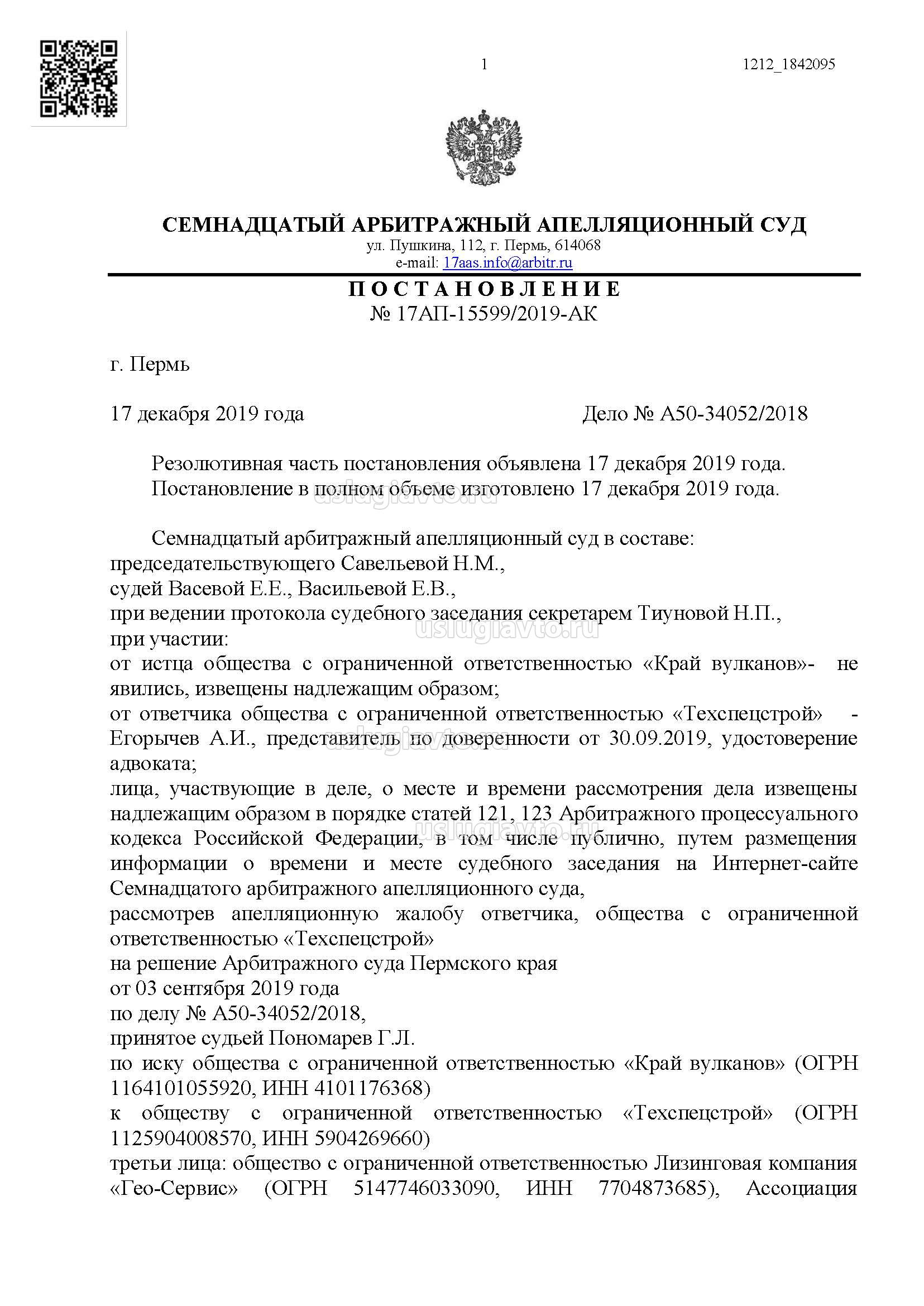 процессуального кодекса Российской Федерации, Семнадцатый арбитражный апелляционный суд