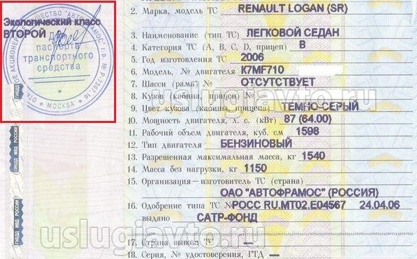В ПТС после 2007 года (в некоторых паспортах графа появилась с августа 2005 г.) графа «Экологический класс» находится под пунктом 13. В ПТС на автомобили, оформленные более ранней датой, данная графа может отсутствовать. В связи с этим собственники таких автомобилей сталкиваются с определенными трудностями.