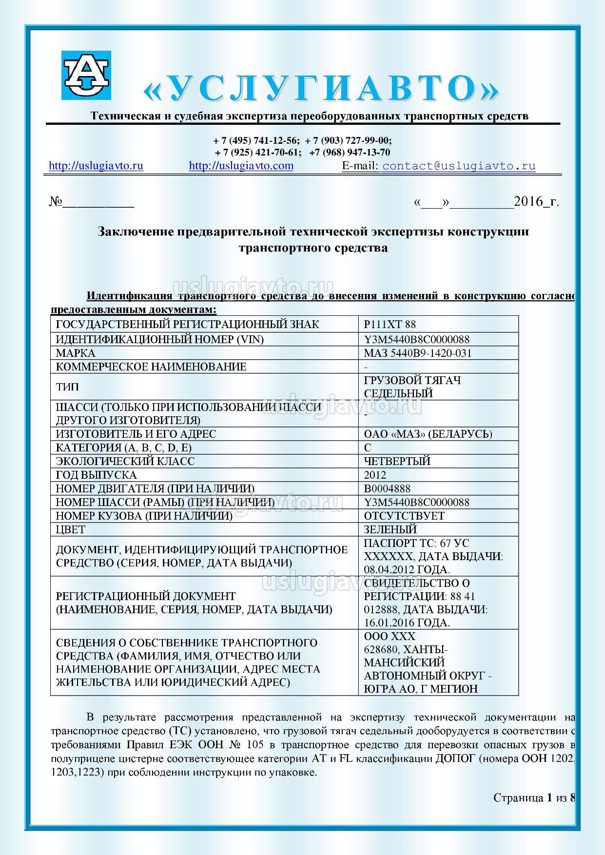 Заключение предварительной технической экспертизы на установку тахографа стр. 1