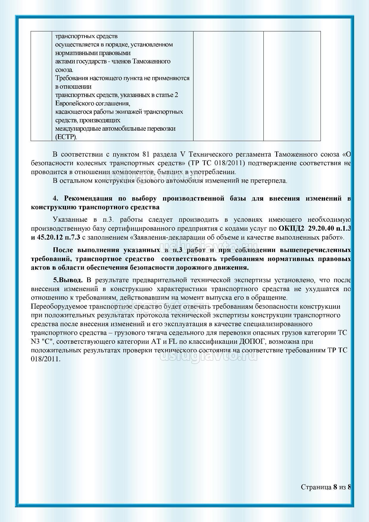 Заключение предварительной технической экспертизы на установку тахографа стр. 8