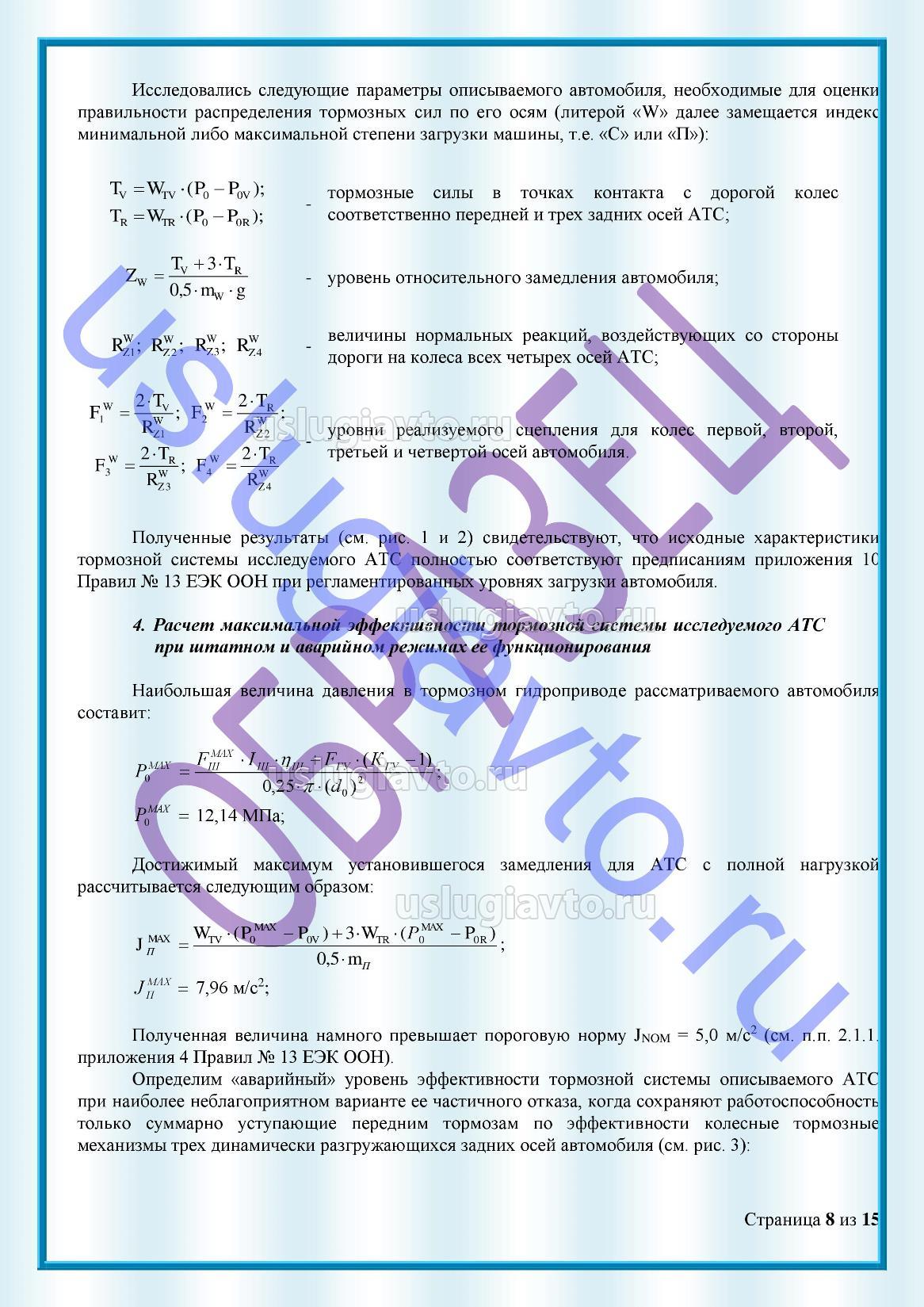 В зависимости от конкретной ситуации может потребоваться расчет прочности рамы (кузова) или расчет эффективности тормозной системы транспортного средства.