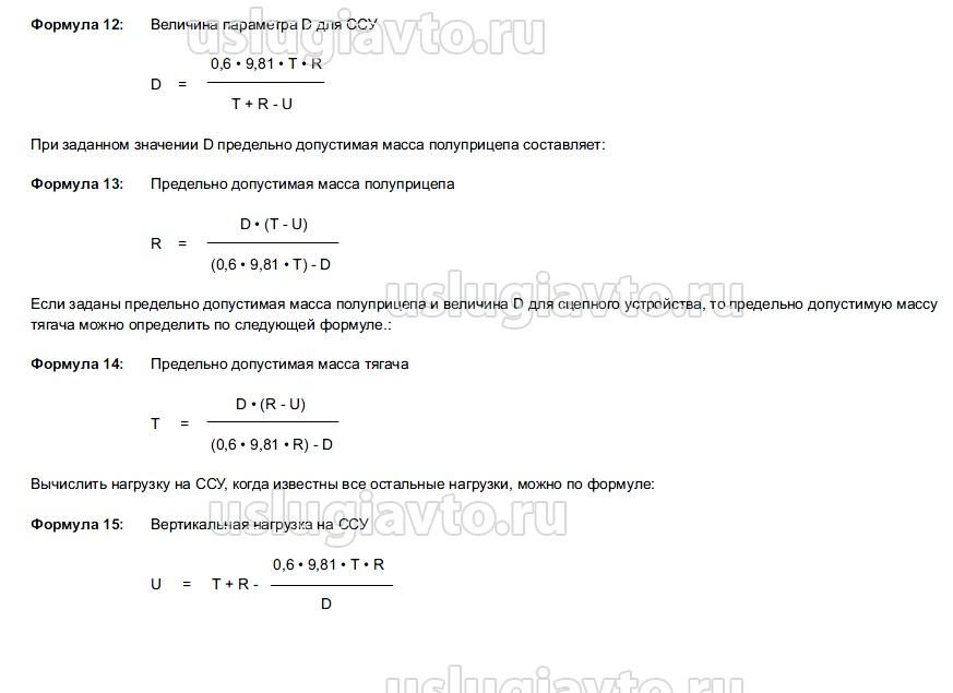 R = разрешённая максимальная масса полуприцепа в [т], включая вертикальную нагрузку на ССУ