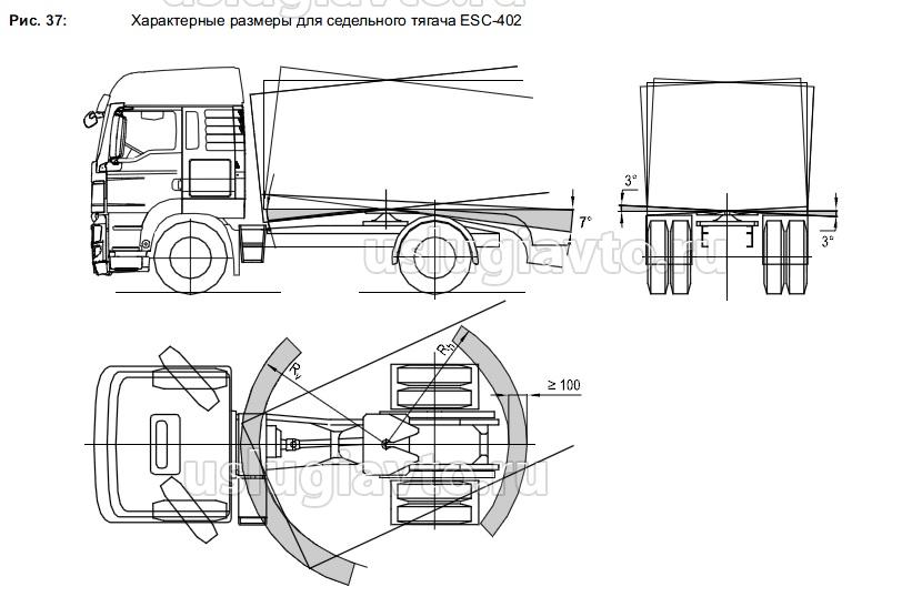 направлении — 3°. Различия в размерах шин, рессор, или в высотах сёдел у тягача и полуприцепа могут уменьшить значения