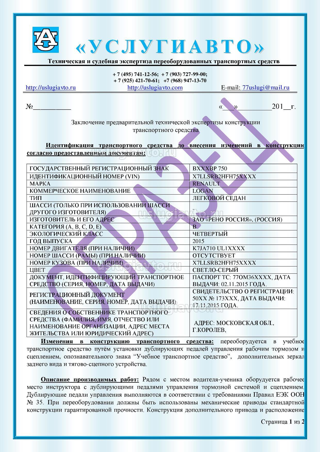 Заключение на установку дублирующих педалей для обучающего стр. 1