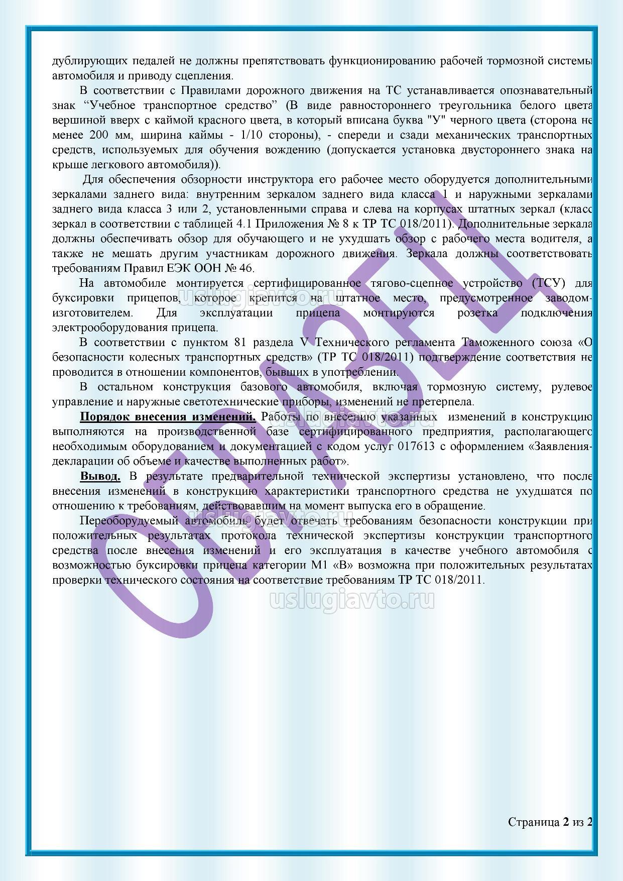 Заключение на установку дублирующих педалей для обучающего стр. 2