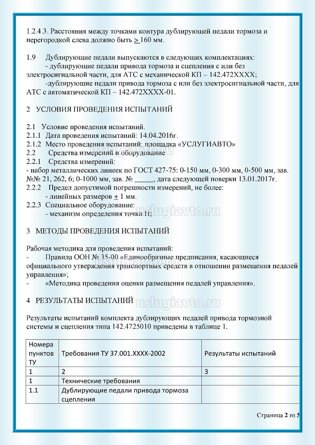 Протокол испытаний дублирующих педалей страница 2