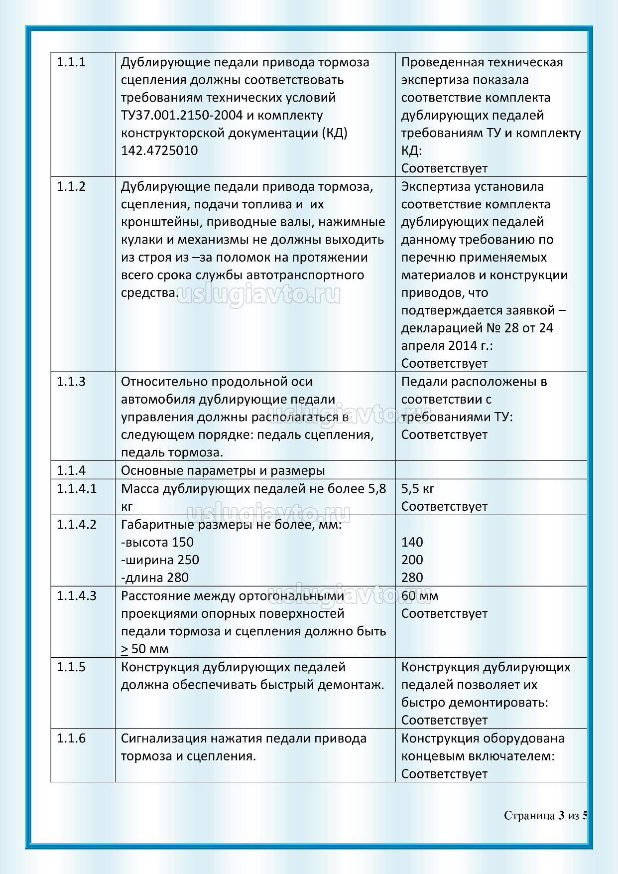 Протокол испытаний дублирующих педалей страница 3
