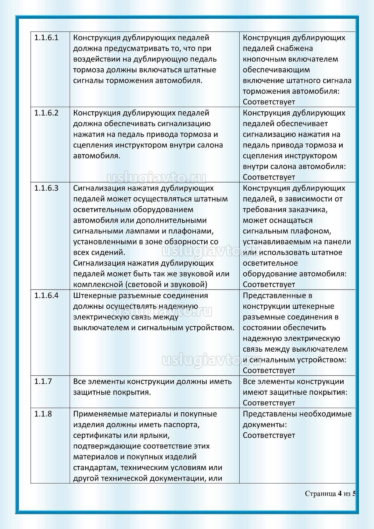 Протокол испытаний дублирующих педалей страница 4