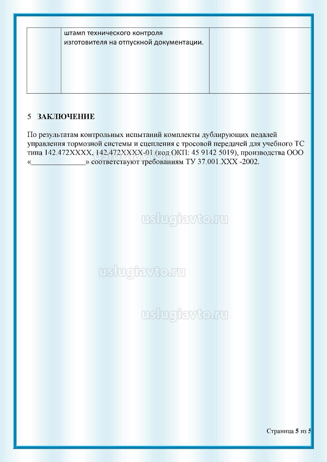 Протокол испытаний дублирующих педалей страница 5