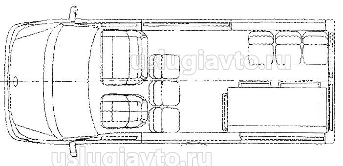 Перечень работ, произведенных при внесении изменений в конструкцию(пример грузовой цельнометаллический фургон) Демонтирована перегородка, отделяющая грузовой отсек от кабины водителя и внутренняя обивка грузового отсека. Произведено круговое остекление оконных проёмов (два стекла с форточкой), с использованием безопасных стекол по требованиям Правил ЕЭК ООН №43. Производен монтаж и установка усилителей настила пола (аналогичных или превосходящих по прочности штатные - заводского изготовления), с крепежными элементами для пассажирских сидений и выдвижного подиума. Усилители настила пола приварены к кузову ТС электродуговой сваркой. Толщина усилителей настила пола 2 мм, каркас под сидения и выдвижной подиум крепятся к усилителям пола болтами М8, пассажирские сидения крепятся к каркасу болтами М8, ремни безопасности закрепляются болтами М12. Производен монтаж и установка электропроводки для дополнительных элементов пассажирского салона. В пассажирском салоне установлен настил пола: фанера и напольное (антискользящее, влагостойкое) покрытие. Производен монтаж и установка: аварийного вентиляционного люка, приточно – вытяжной вентиляции, дополнительной подножки у правой сдвижной двери (235 мм), внутренней обивки и плафонов освещения пассажирского салона, преобразователя напряжения на 220 В, бактерицидной лампы, дополнительного жидкостного отопителя салона, независимого воздушного отопителя, 6 (шести) сертифицированных сидений в пассажирском салоне, кондиционера, выдвижного подиума по левому борту, поручней при входе в салон. Подиум оборудуется удерживающими элементами для фиксации гроба, доступ к нему осуществляется через дверцу, расположенную в задней стенке. На штатные места устанавливается перегородка с форточкой. Пассажирские сидения оборудованы сертифицированными ремнями безопасности в соответствии с требованиями Правил ЕЭК ООН №14 и 16. Для входа пассажиров используется сдвижная правая дверь. Общее число пассажирских мест, не считая места водителя, становится равным 8 (восьми).