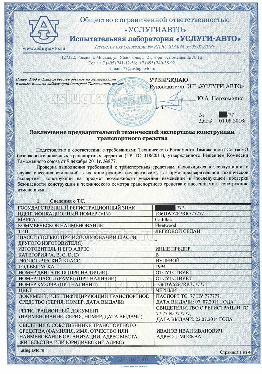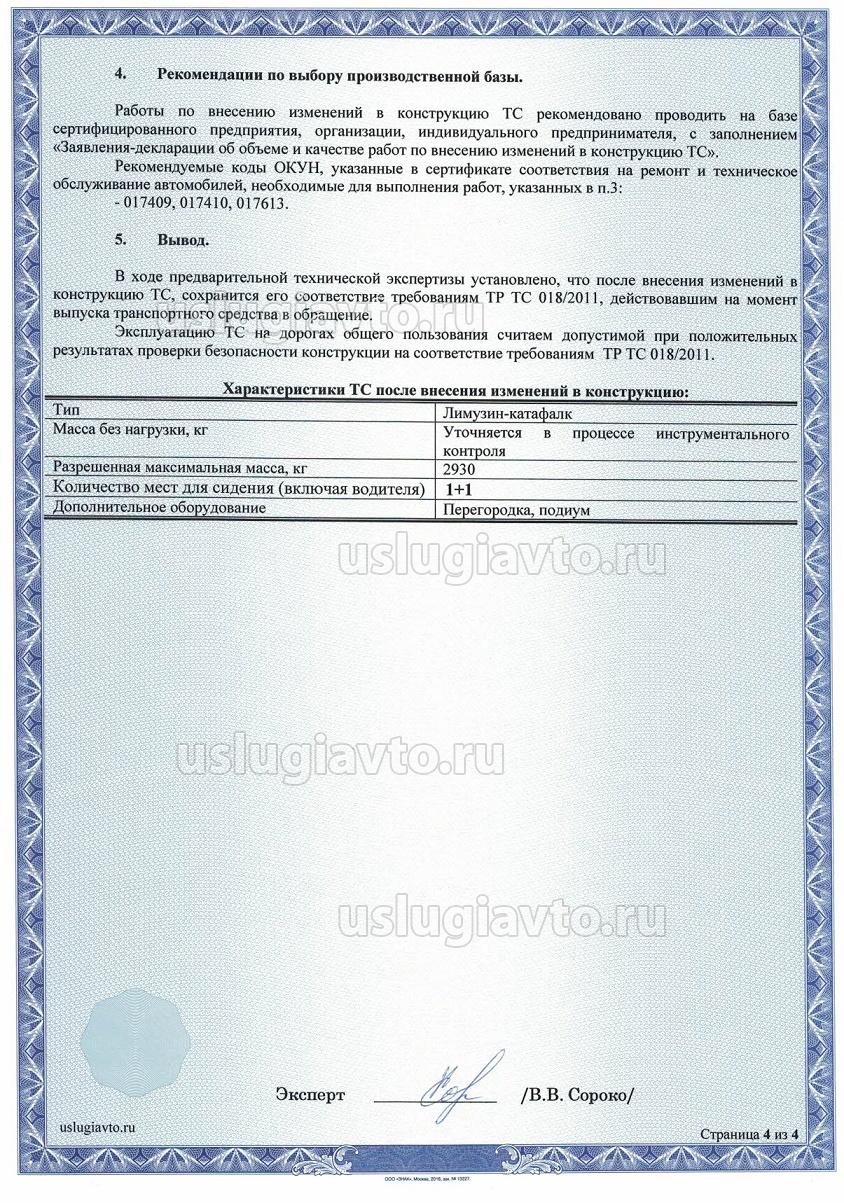 Вывод: в результате предварительной технической экспертизы установлено, что после внесения изменений в конструкцию характеристики транспортного средства не ухудшатся по отношению к требованиям, действовавшим на момент выпуска его в обращение.
