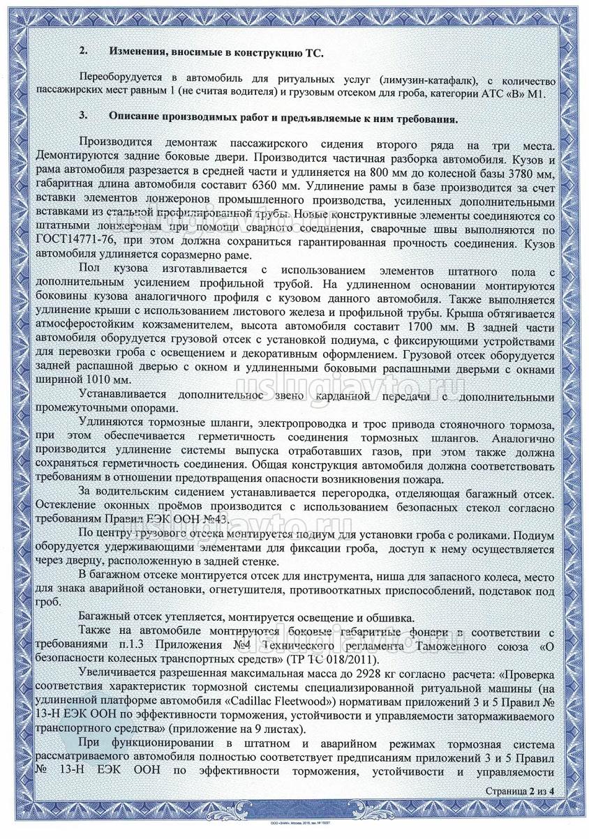 ПРИМЕР переоборудования в катафалк американского авто путем удлинения кузова и повышения разрешенной максимальной массы.