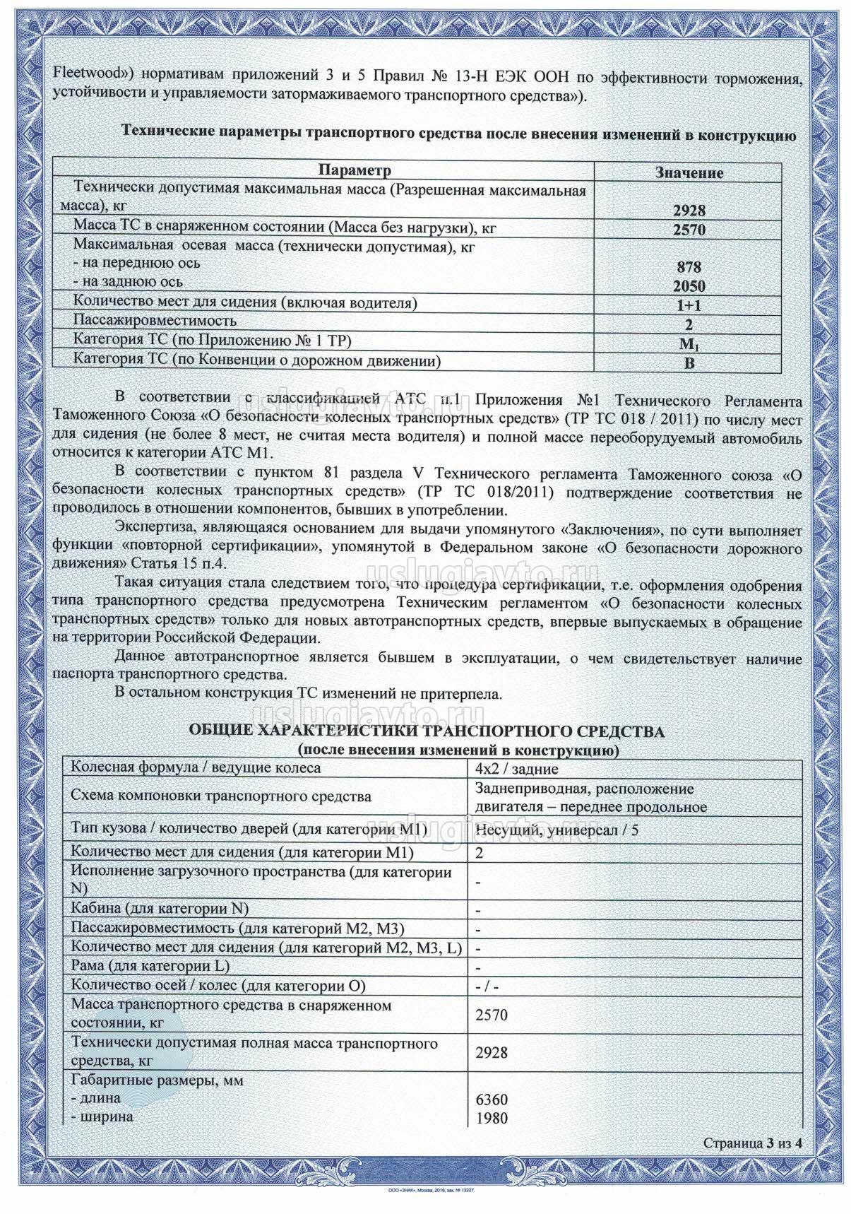 Порядок внесения изменений: работы по внесению указанных изменений в конструкцию необходимо выполнять в соответствии с принятыми в автомобилестроении нормами на производственной базе сертифицированного предприятия, располагающего необходимой документацией и оборудованием (код ОКУН: 017613), с заполнением «Заявления-декларации об объеме и качестве выполненных работ».