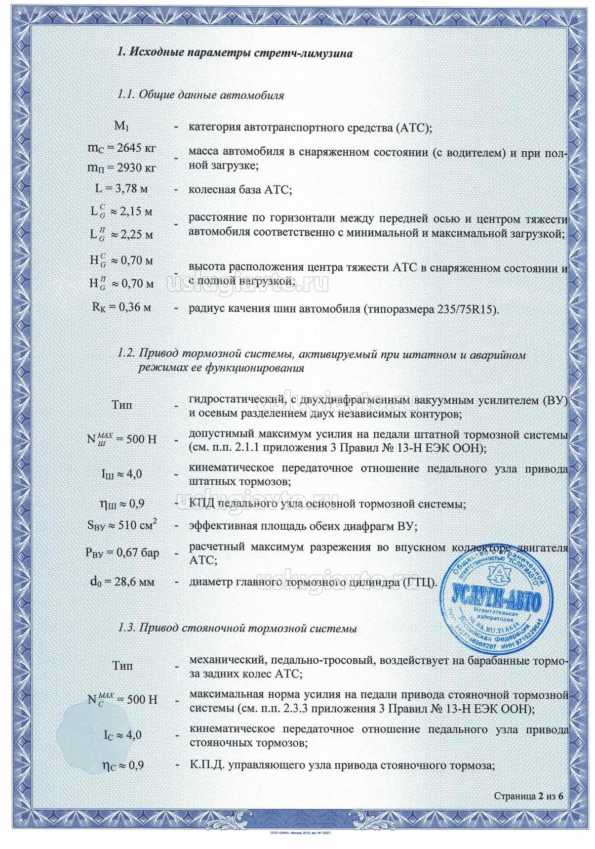 Увеличивается разрешенная максимальная масса до 2928 кг согласно расчета: «Проверка соответствия характеристик тормозной системы специализированной ритуальной машины (на удлиненной платформе автомобиля «Cadillac Fleetwood») нормативам приложений 3 и 5 Правил № 13-Н ЕЭК ООН по эффективности торможения, устойчивости и управляемости затормаживаемого транспортного средства» (приложение на 9 листах).