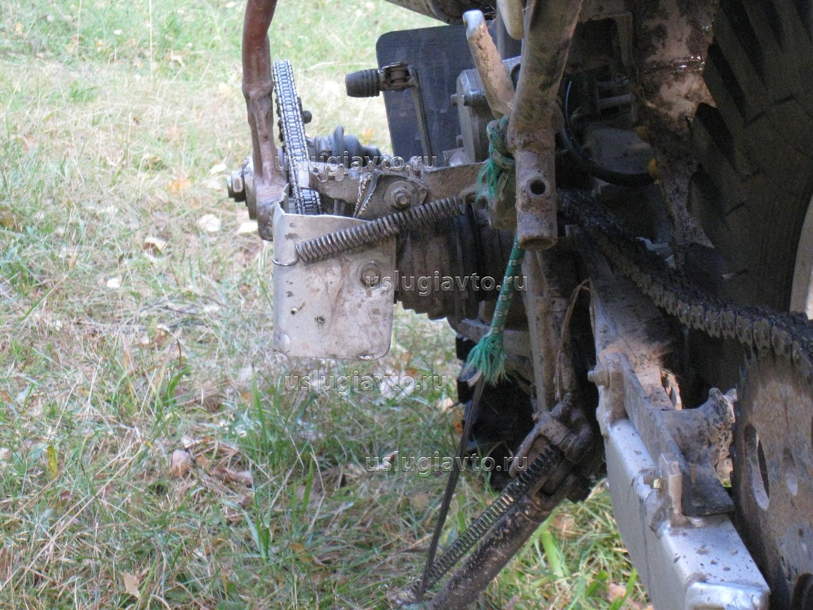 В качестве межосевого дифференциала был применен самодельный храповик (сейчас заменен его на обгонную муфту иностранного производства). Включение переднего привода осуществляется из-за разницы в передаточных отношениях передней цепной передачи и задней, включается привод при 2-х процентной пробуксовке заднего колеса. Значительно изменено передаточное отношения главной передачи на заднее колесо и составляет 5 единиц (звездочка 65 зубов).