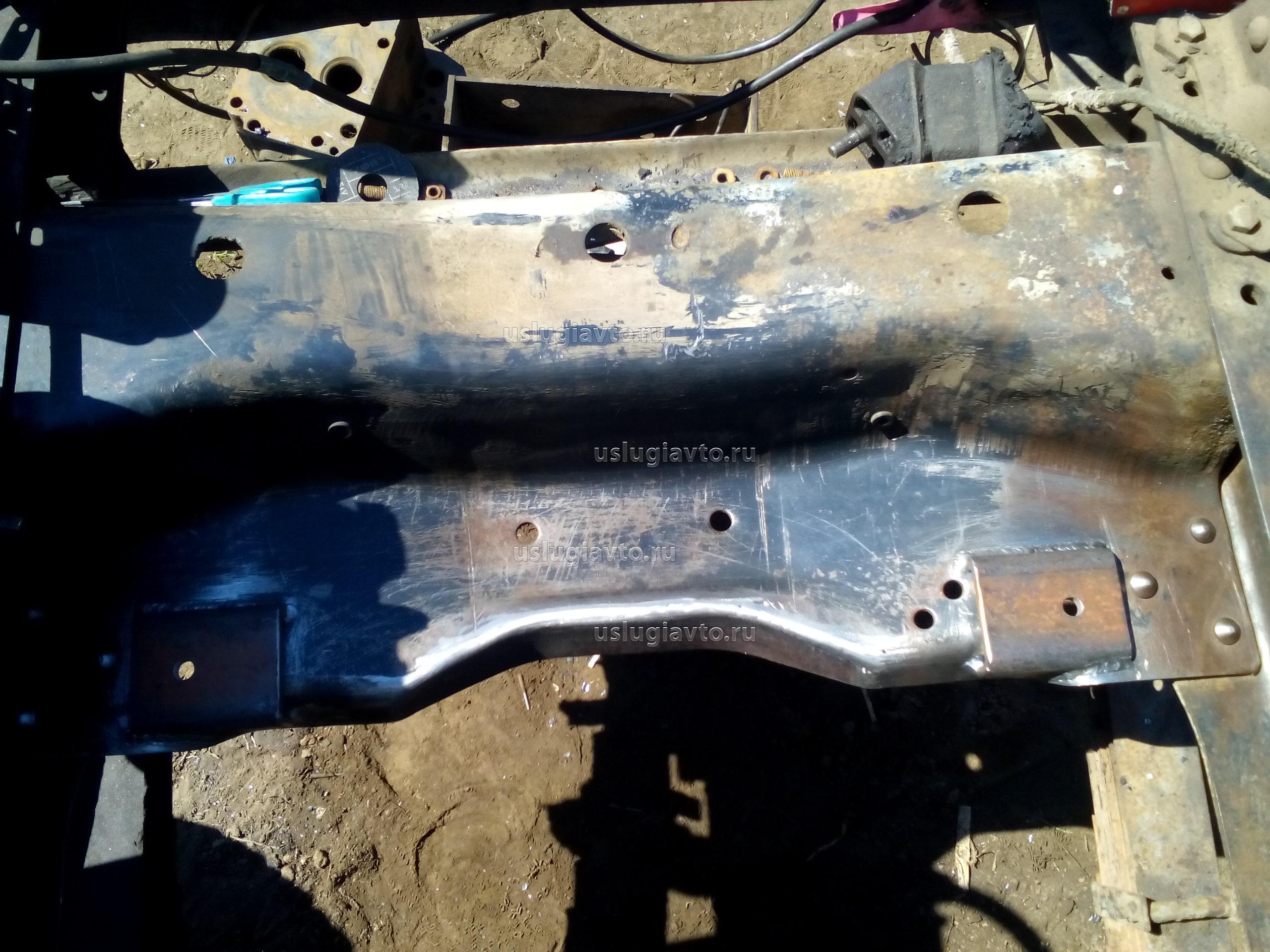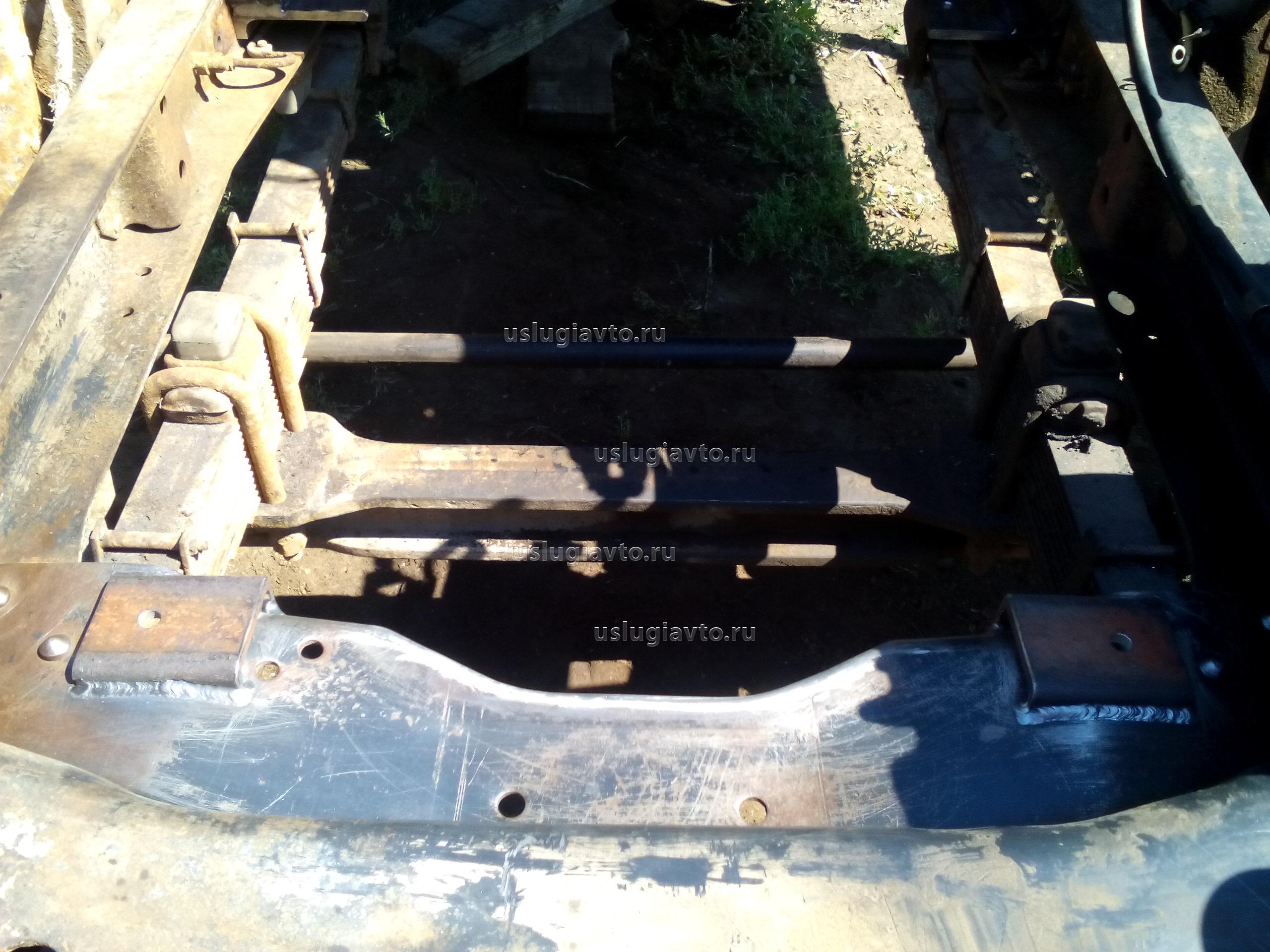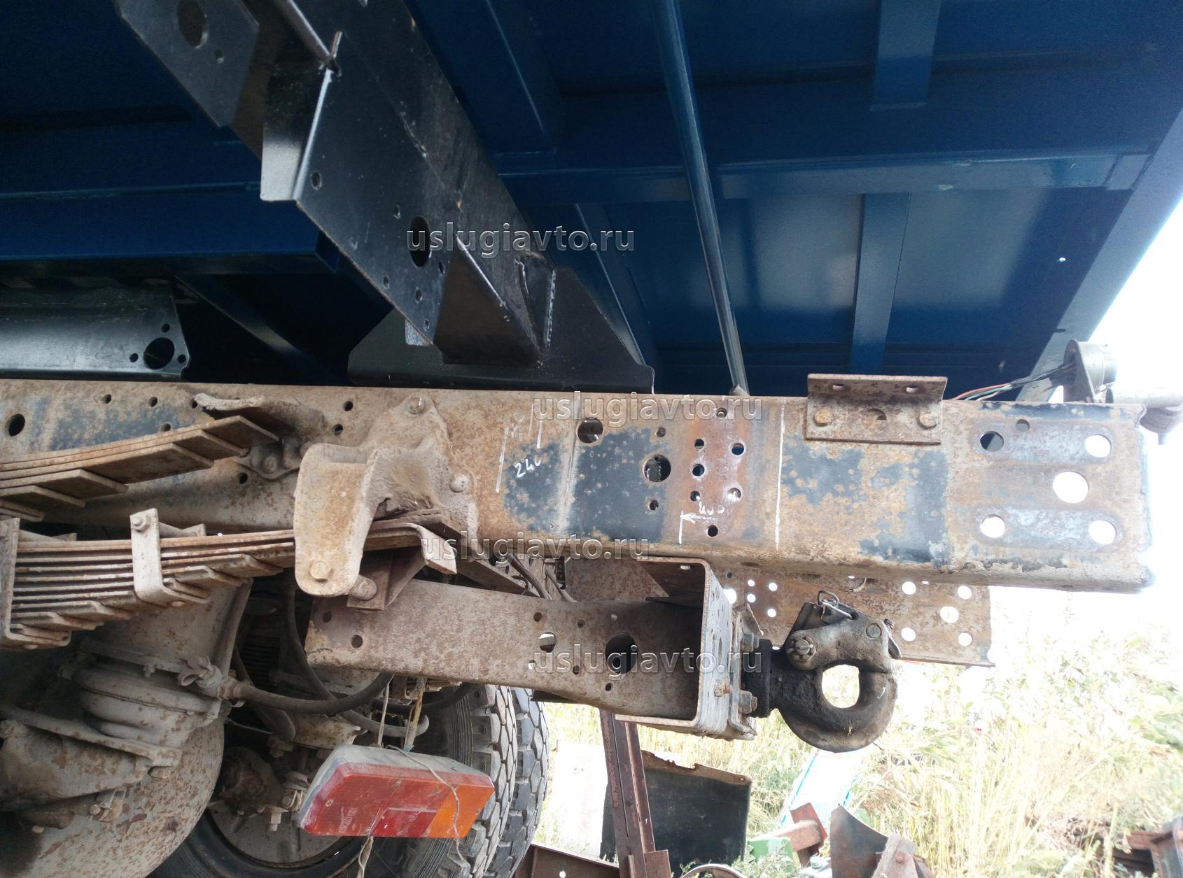 Фото для наглядности. Эта поперечина будет установлена сверху, ее место займет КАМАЗовская поперечина с "куском" рамы. По бокам конструкция свяжется кронштейнами противоподкатного бруса.