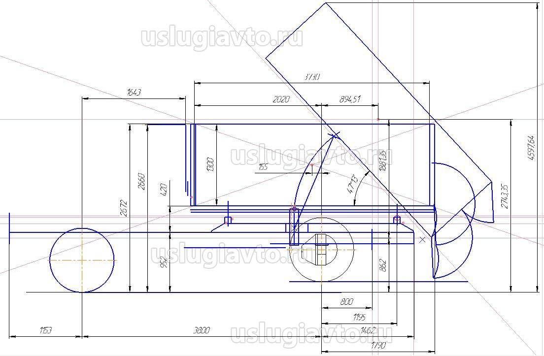 А если вслед за рамой, увеличить и свес самосвальной установки примерно на теже 400 мм? Прилагаю эскизы.
