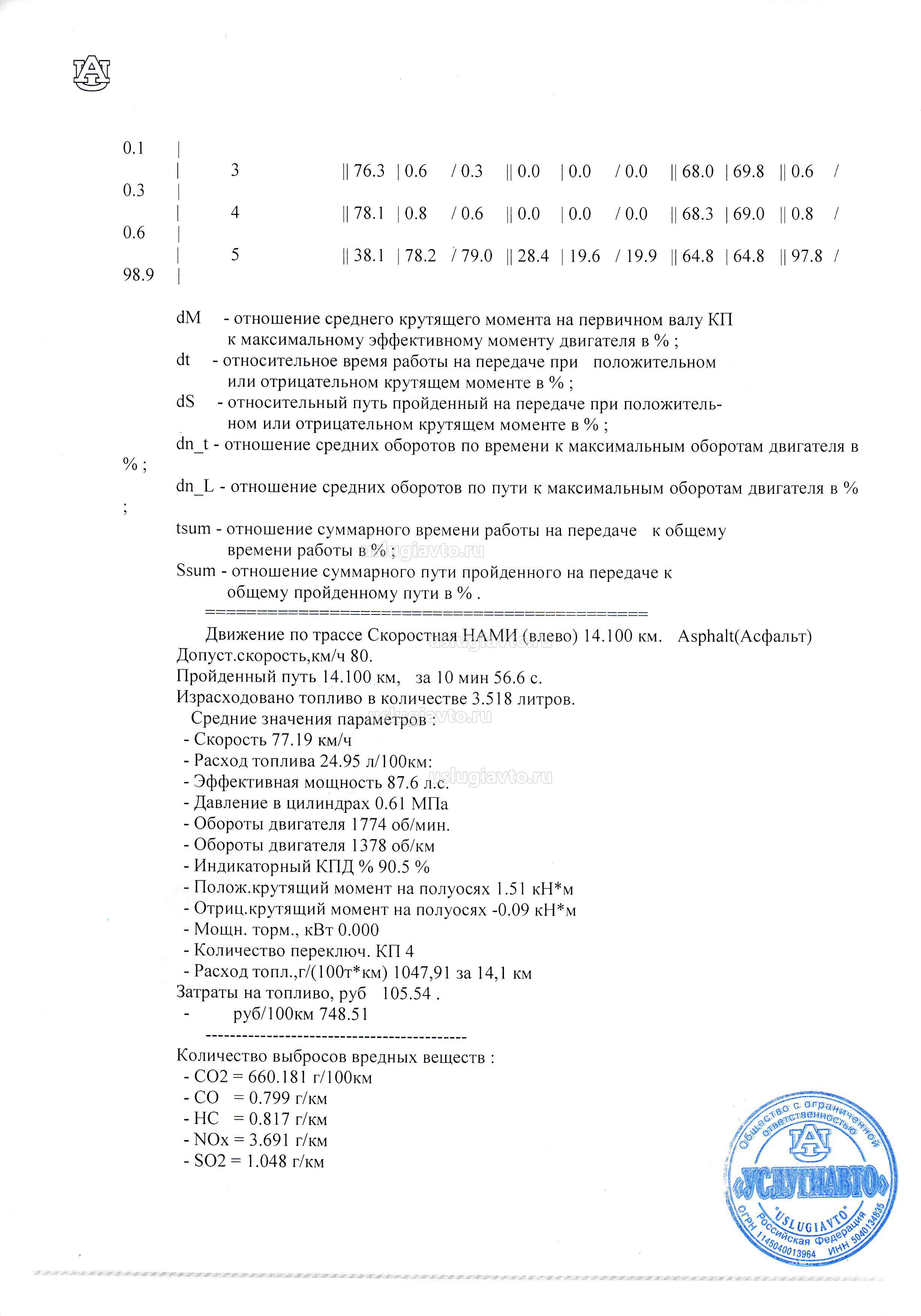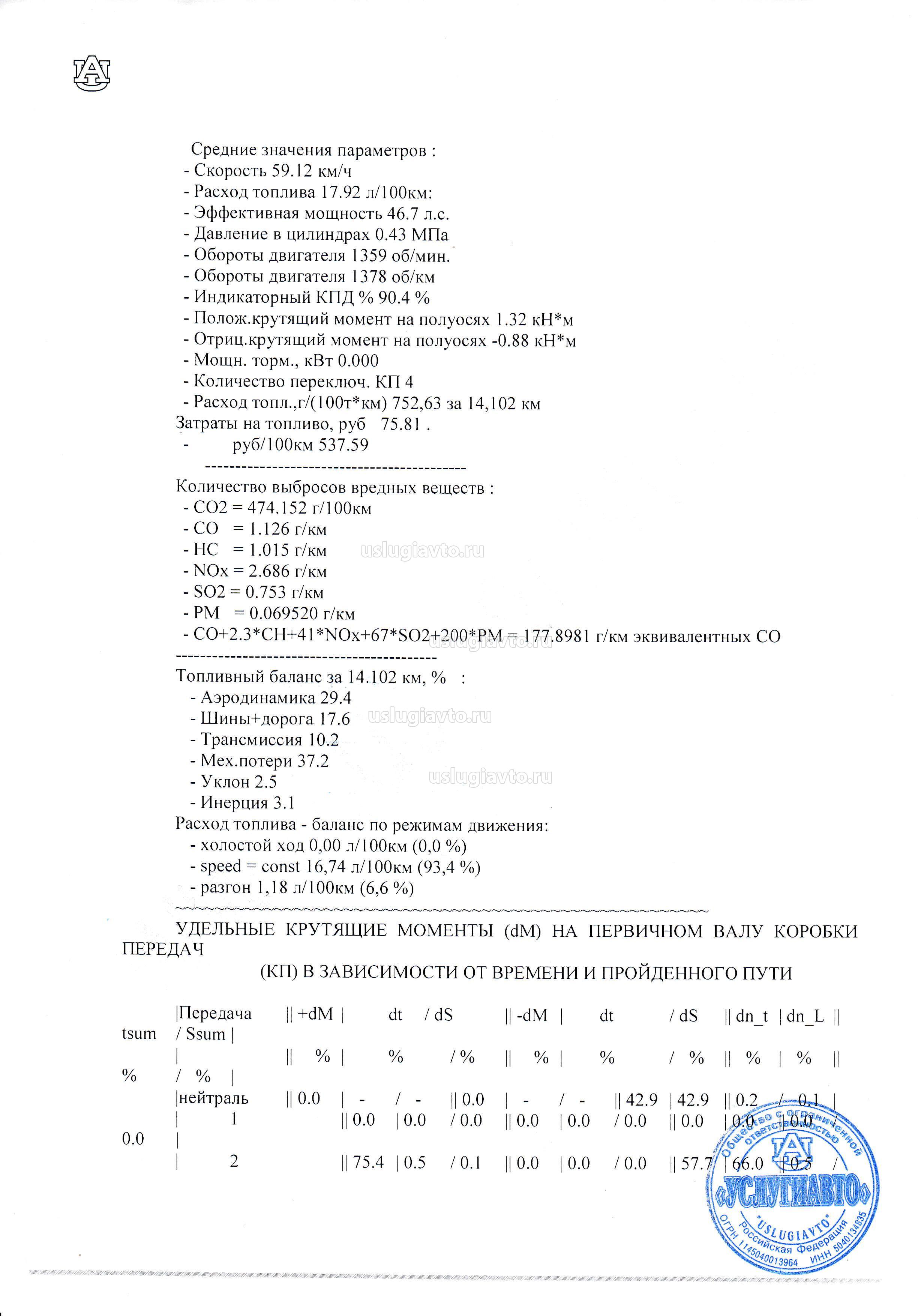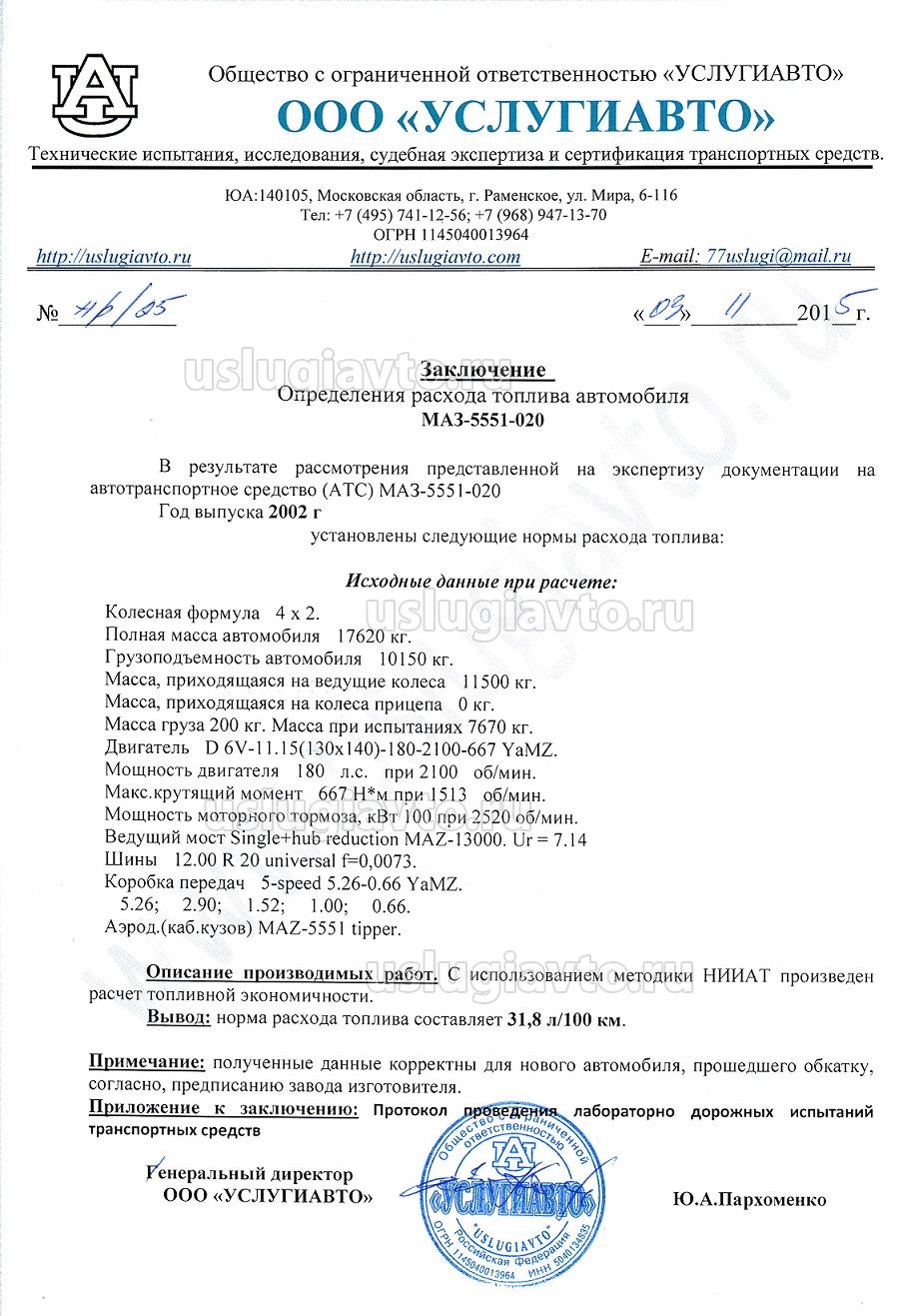образец Заключения на расчет норм расхода топлива транспортных средств