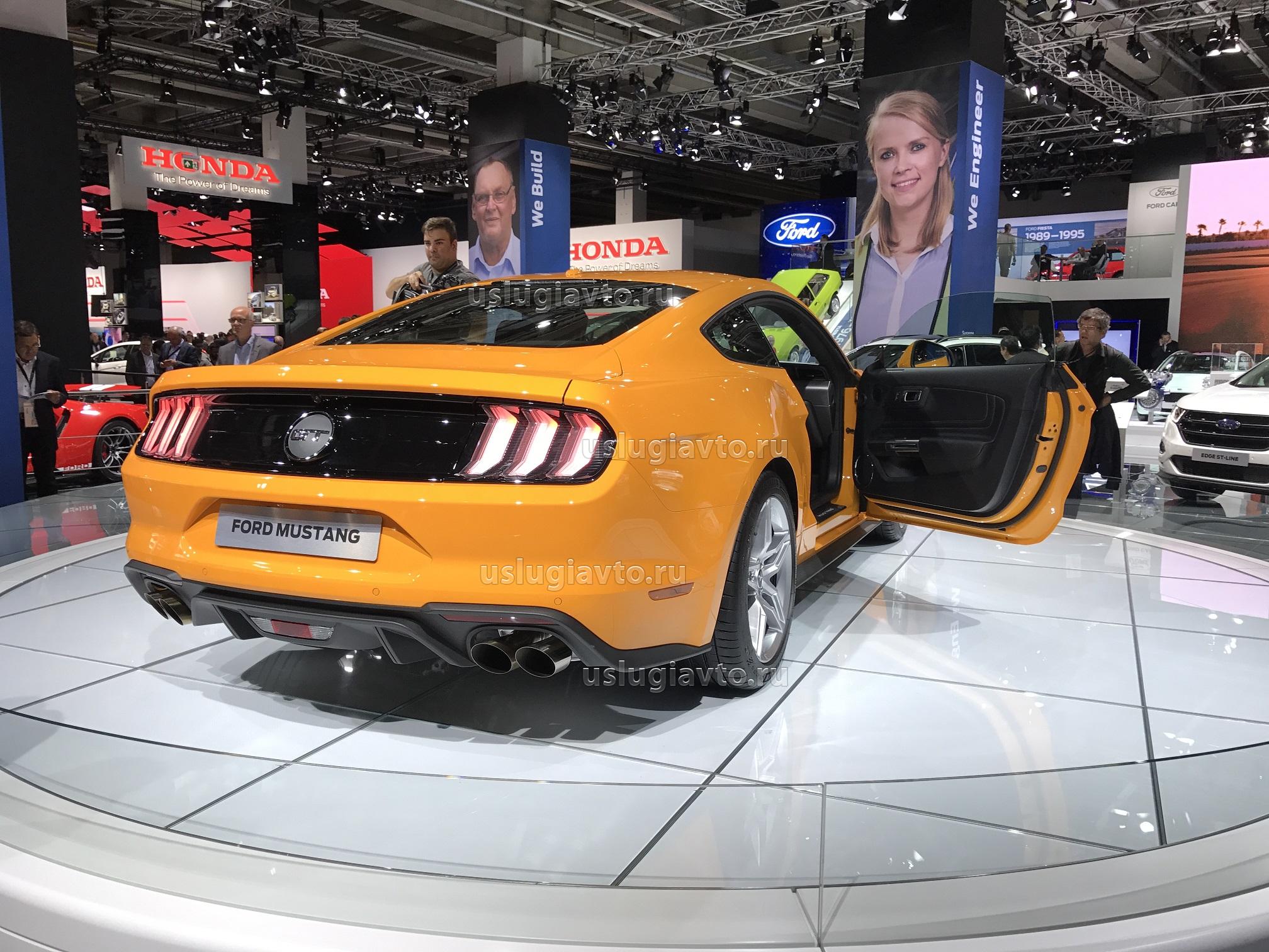 Обновлённый Ford Mustang отличается от предшественника пересмотренной радиаторной решёткой, новым передним и задним бампером, в котором появился улучшенный диффузор и спойлер.