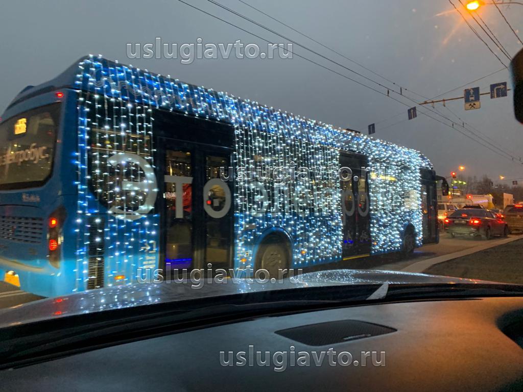 Т.к. гирлянды жестко закреплены на боковых стенках кузова автобуса сверху и снизу, и состоят из множества вертикальных проводов, таким образом они перекрывают доступ через аварийные выходы, какими являются часть окон автобуса. А это нарушение правил ООН №107.