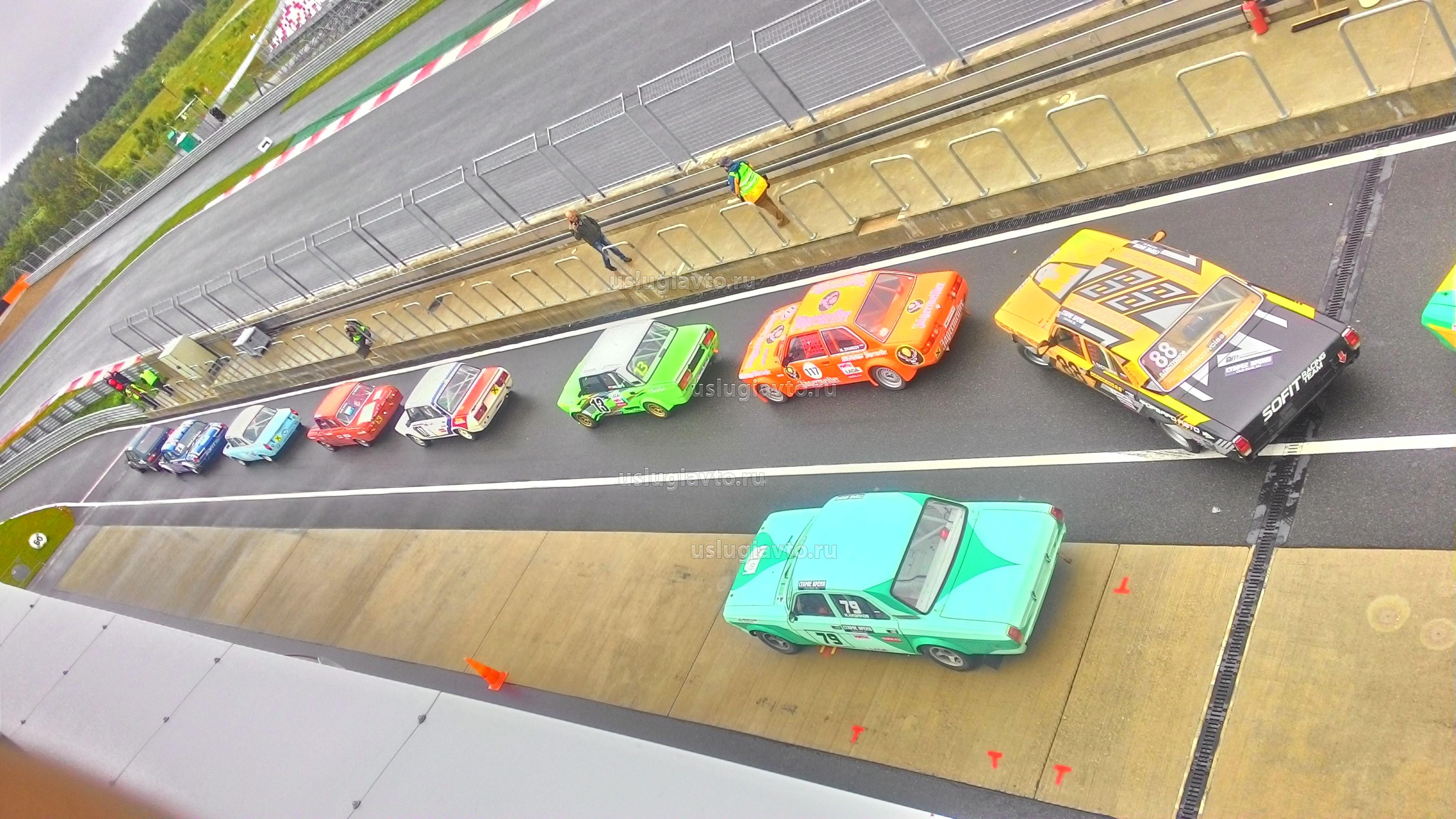 "москвичи","волги", "жигули", "ижи" в ожидании выезда на старт