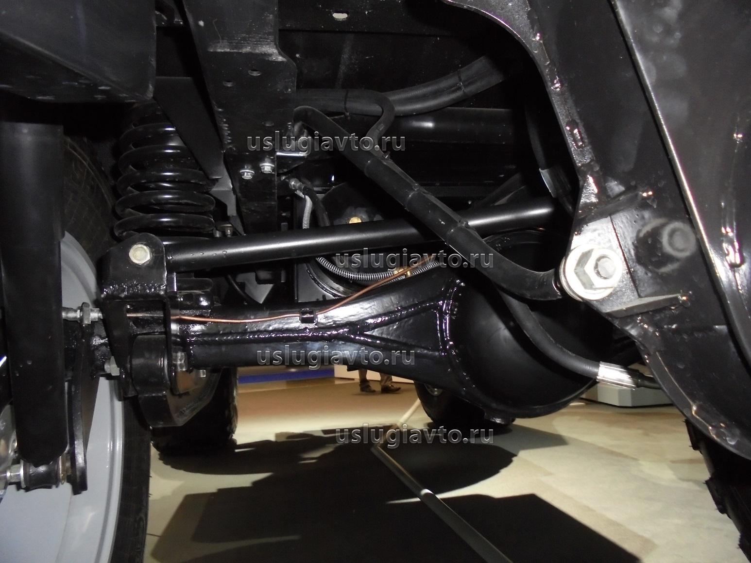 В подвеске отошли от классической рессоры в пользу продольного рычага и пружины