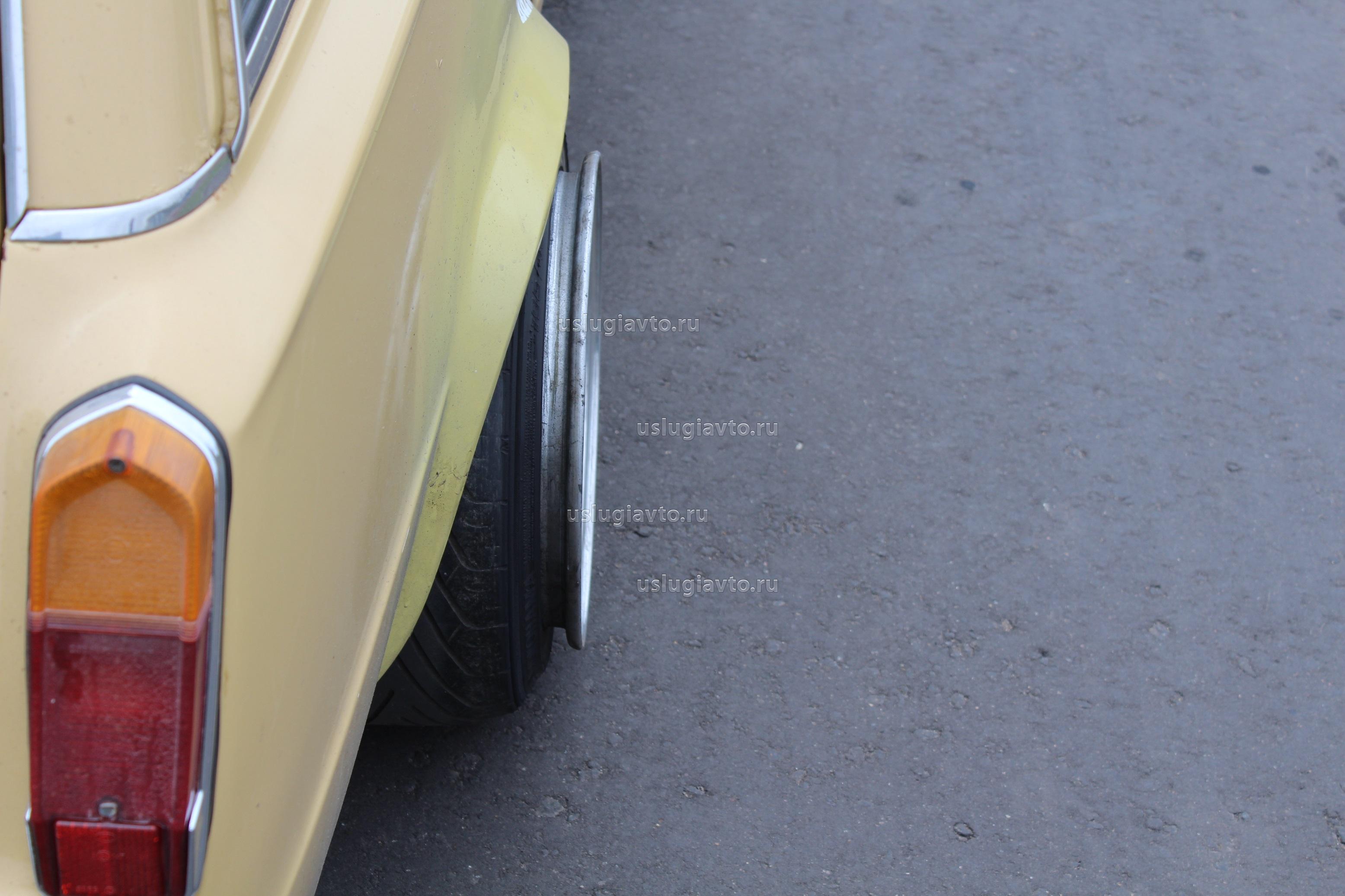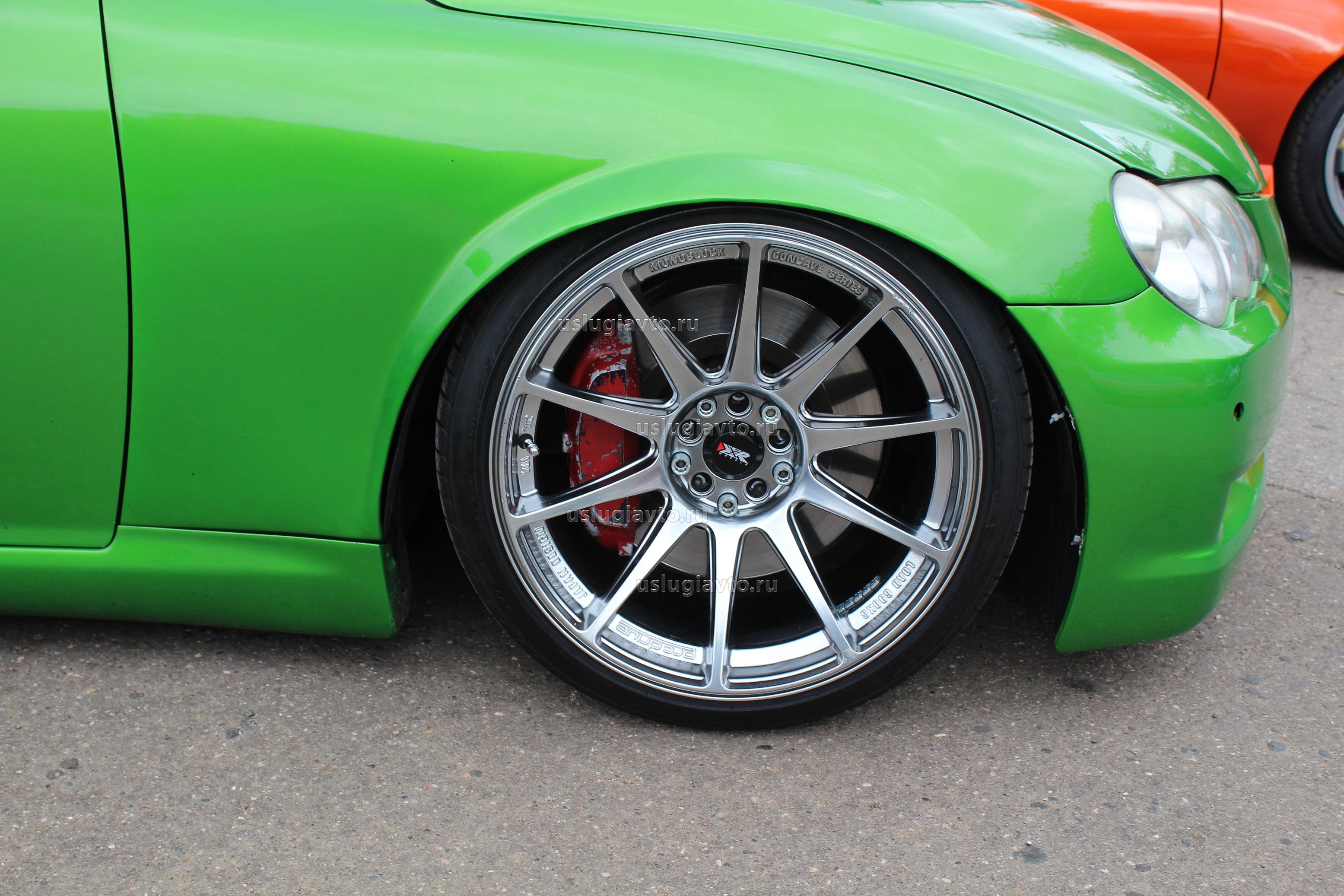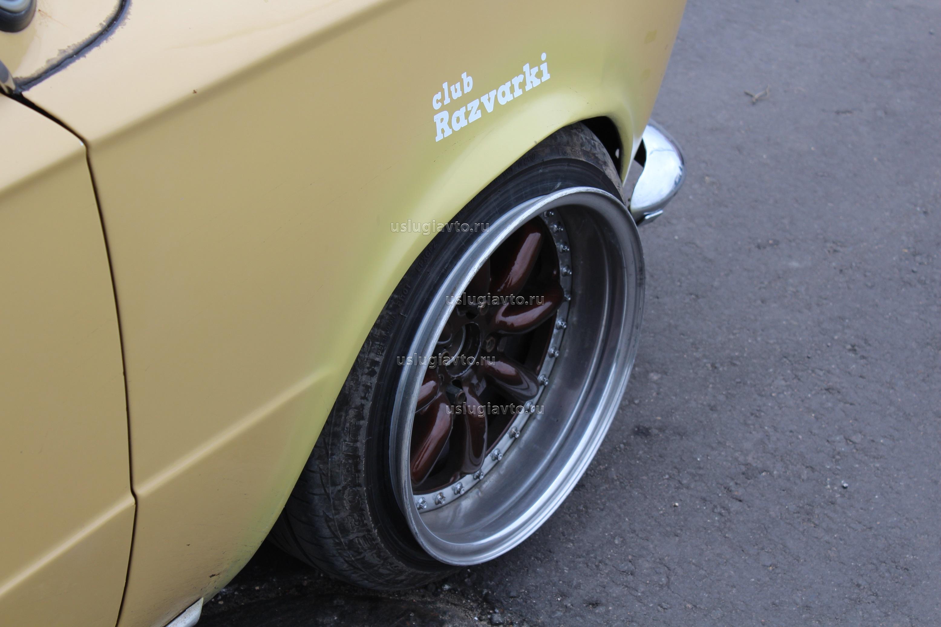 ВАЗ-2102 в стиле Stance. Стандартная шина "натягивается" на широкий диск. Верхом мастерства считается, когда край диска соприкасается с крылом.