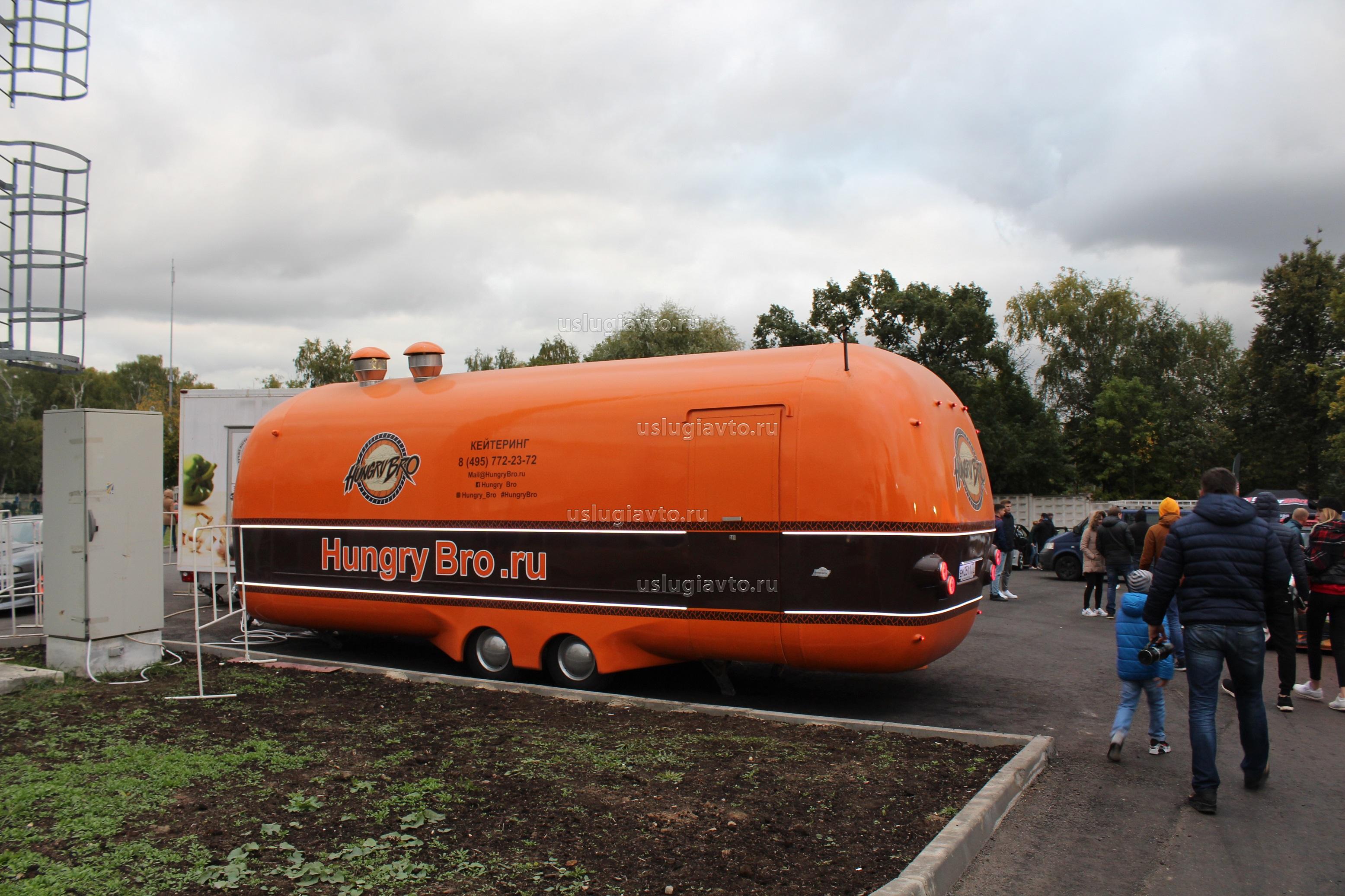 Огромный фуд-трак - специальный прицеп-пиццерия. Оснащен тормозом наката