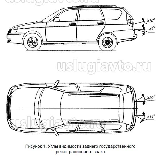 Однако если конструкция транспортного средства не позволяет установить государственный регистрационный знак перпендикулярно опорной плоскости транспортного средства, то для государственных регистрационных знаков, высота верхнего края которых от опорной поверхности не более 1200 мм, допускается увеличение отклонения от вертикальной плоскости до 30°, если поверхность, на которой устанавливается государственный регистрационный знак, обращена вверх, и 15°, если эта поверхность обращена вниз.