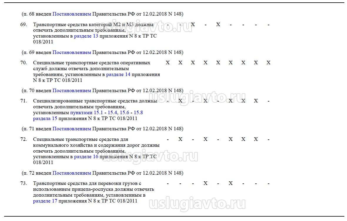 Примечание. Символ "X" означает, что требование применяется к транспортному средству соответствующей категории.