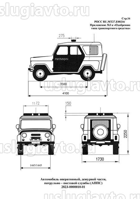 Пример ОТТС автомобилей "УАЗ" до 2006 года выпуска: