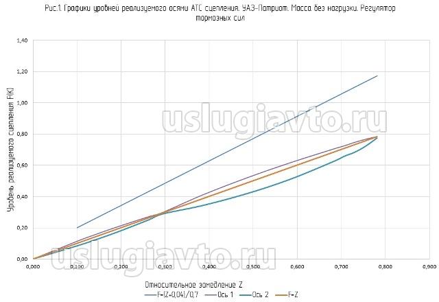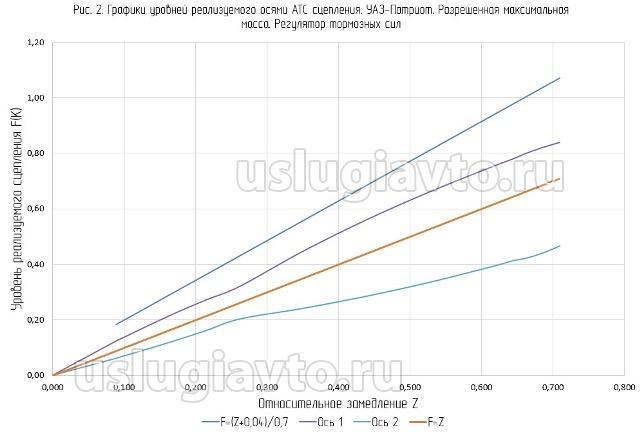 График уровней реализуемого осями УАЗ-Патриот сцепления. Разрешенная максимальная масса, регулятор тормозных сил.