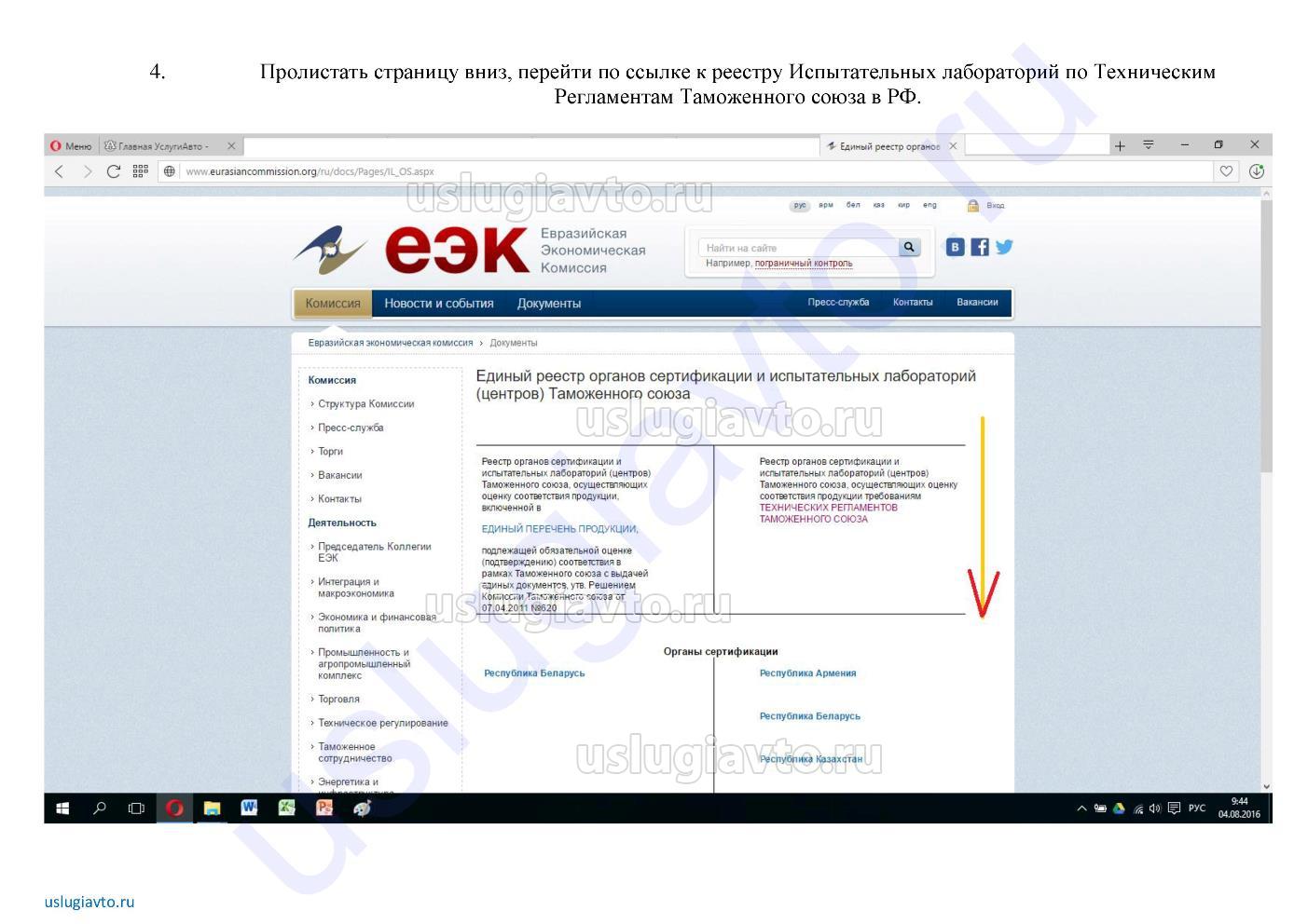 Поиск лаборатории "УСЛУГИ-АВТО" на портале Евразийской экономической комиссии Шаг 4-ый