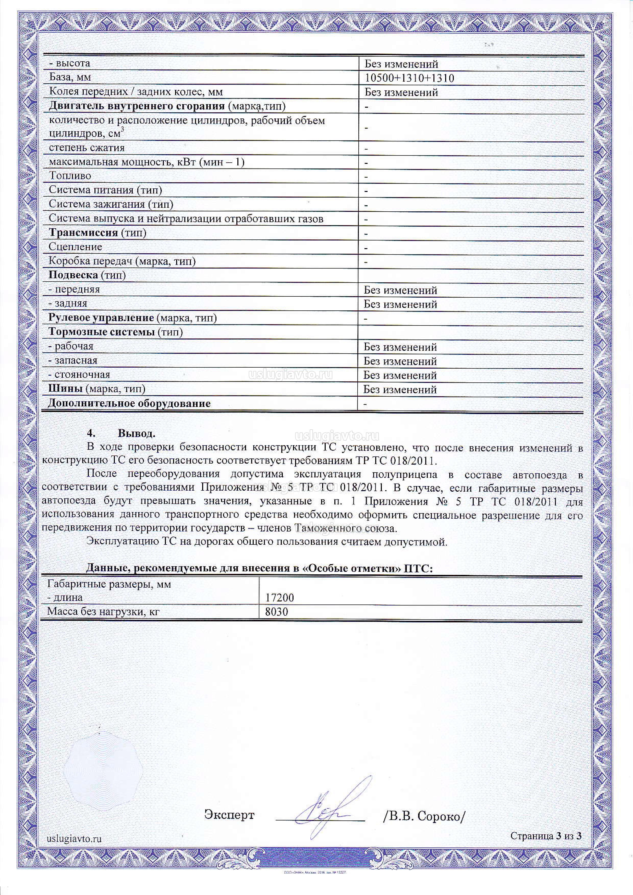 Считаем допустимым удлинение рамы (шасси), при наличии положительного «Заключения предварительной технической экспертизы конструкции транспортного средства» №485 от 23.09.2016г., оформленного и выданного аккредитованной ИЛ «УСЛУГИ-АВТО» и последующей проверки безопасности конструкции и технического осмотра транспортного средства с внесенными в конструкцию изменениями (Протокол проверки безопасности конструкции транспортного средства после внесенных в нее изменений №3070 от 18.11.2016г., выданного аккредитованной ИЛ «УСЛУГИ-АВТО»).