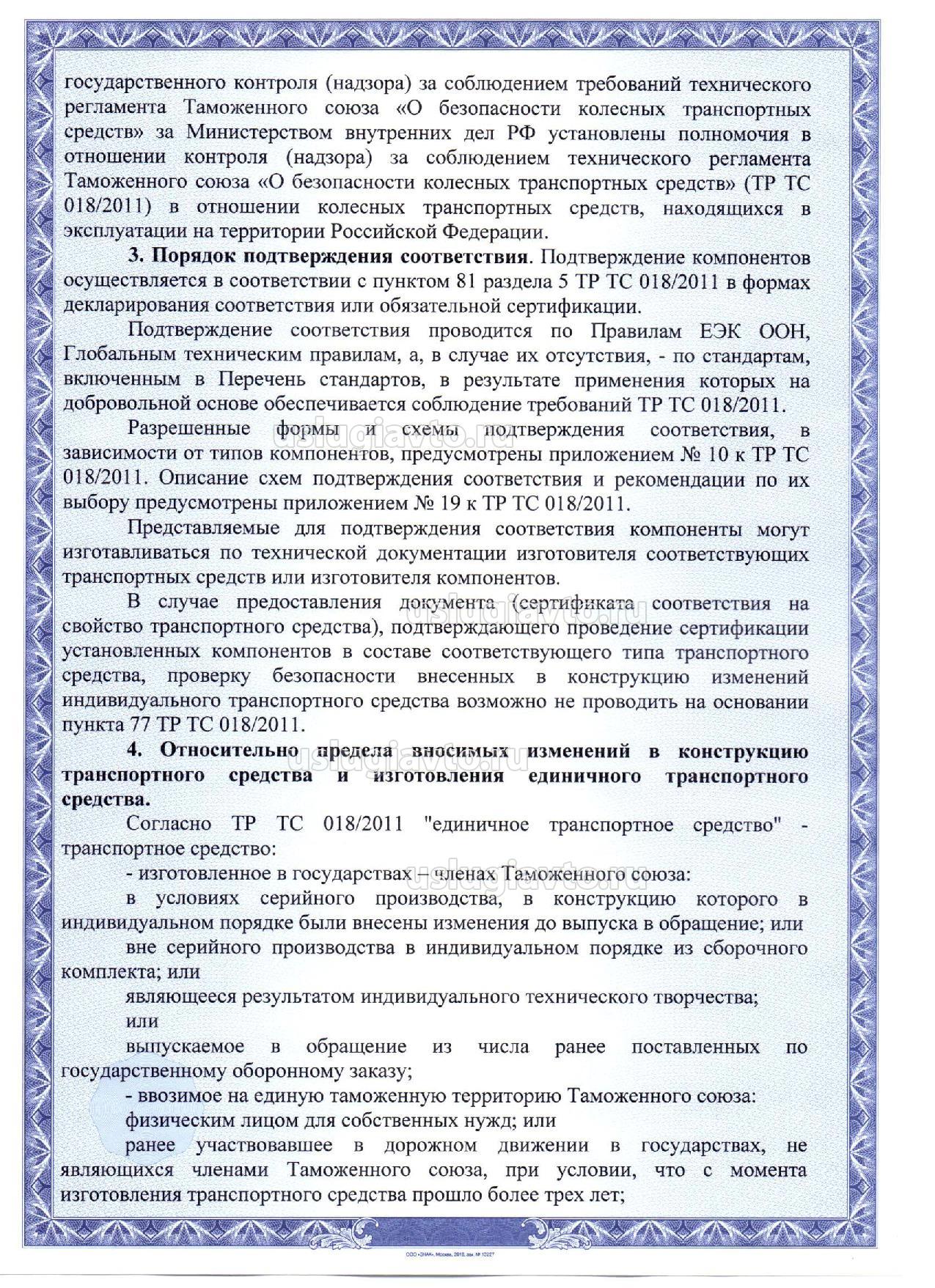 Таким образом, в случае предоставления документа (сертификата соответствия), подтверждающего проведение сертификации установленных компонентов в составе соответствующего типа ТС, проверку безопасности внесенных в конструкцию изменений индивидуального транспортного средства возможно не проводить на основании пункта 77 ТР ТС 018/2011.