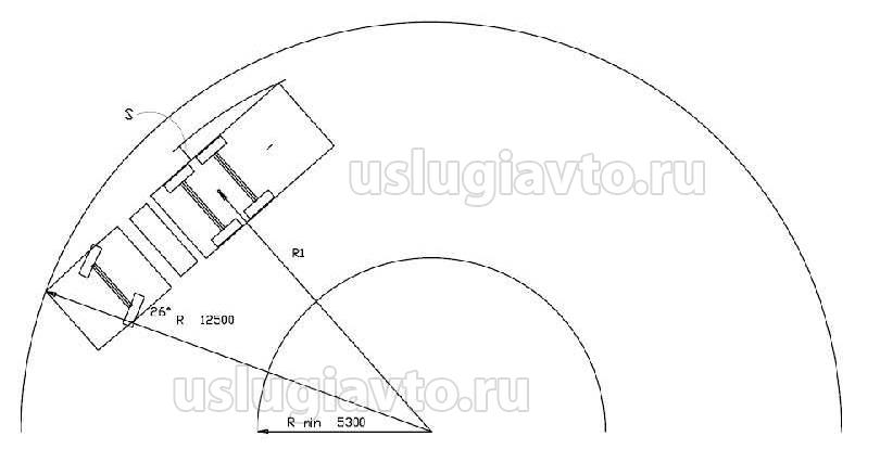 Исходя из компоновки ТС после переоборудования задний свес составляет 3555 мм, т.е. 82% от колесной базы ТС. Проверим допустимость такой длины заднего свеса в соответствии с требованиями ГОСТ Р 52389-2005 (Рисунок – 3).
