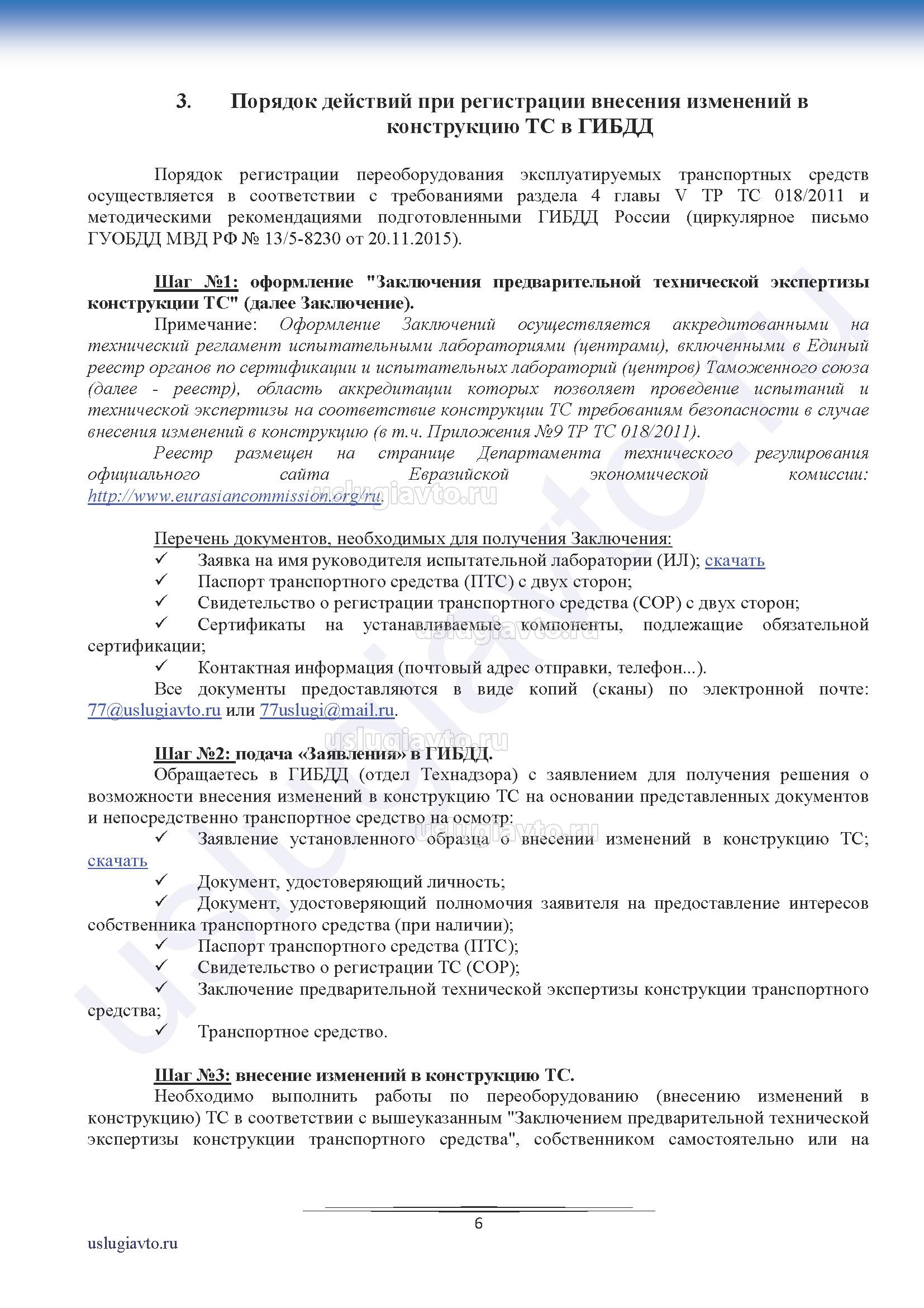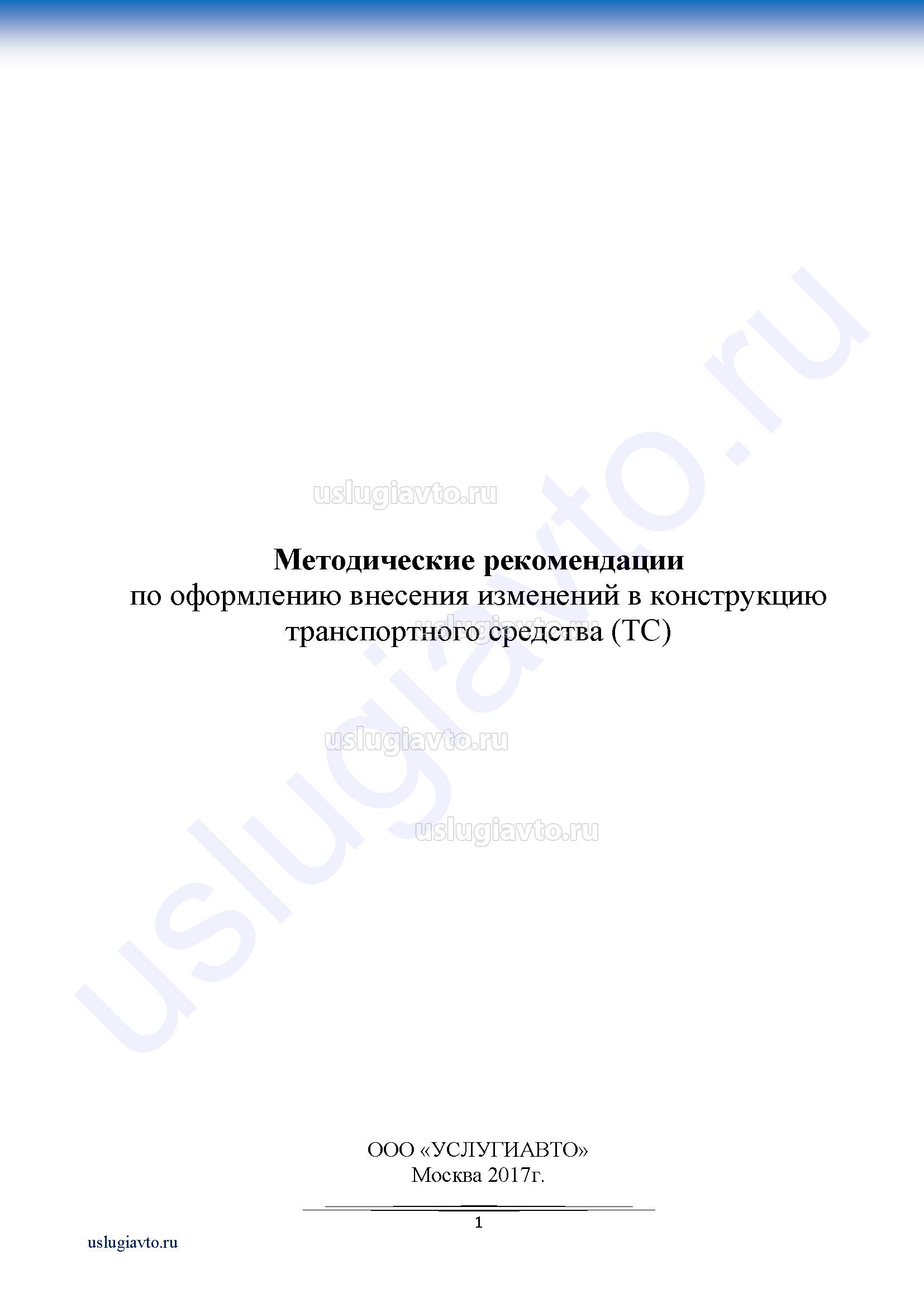 Методические рекомендации по оформлению внесения изменений в конструкцию транспортного средства (ТС)