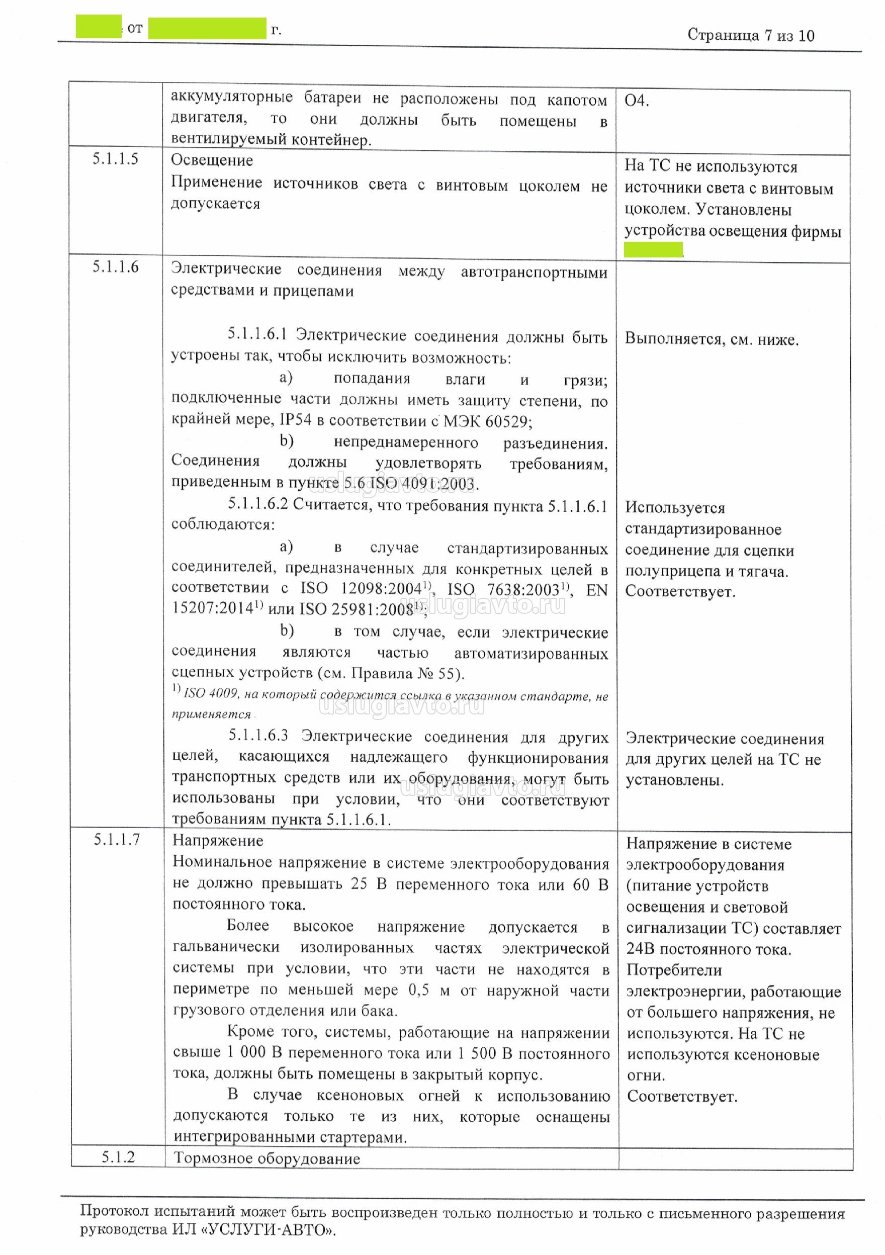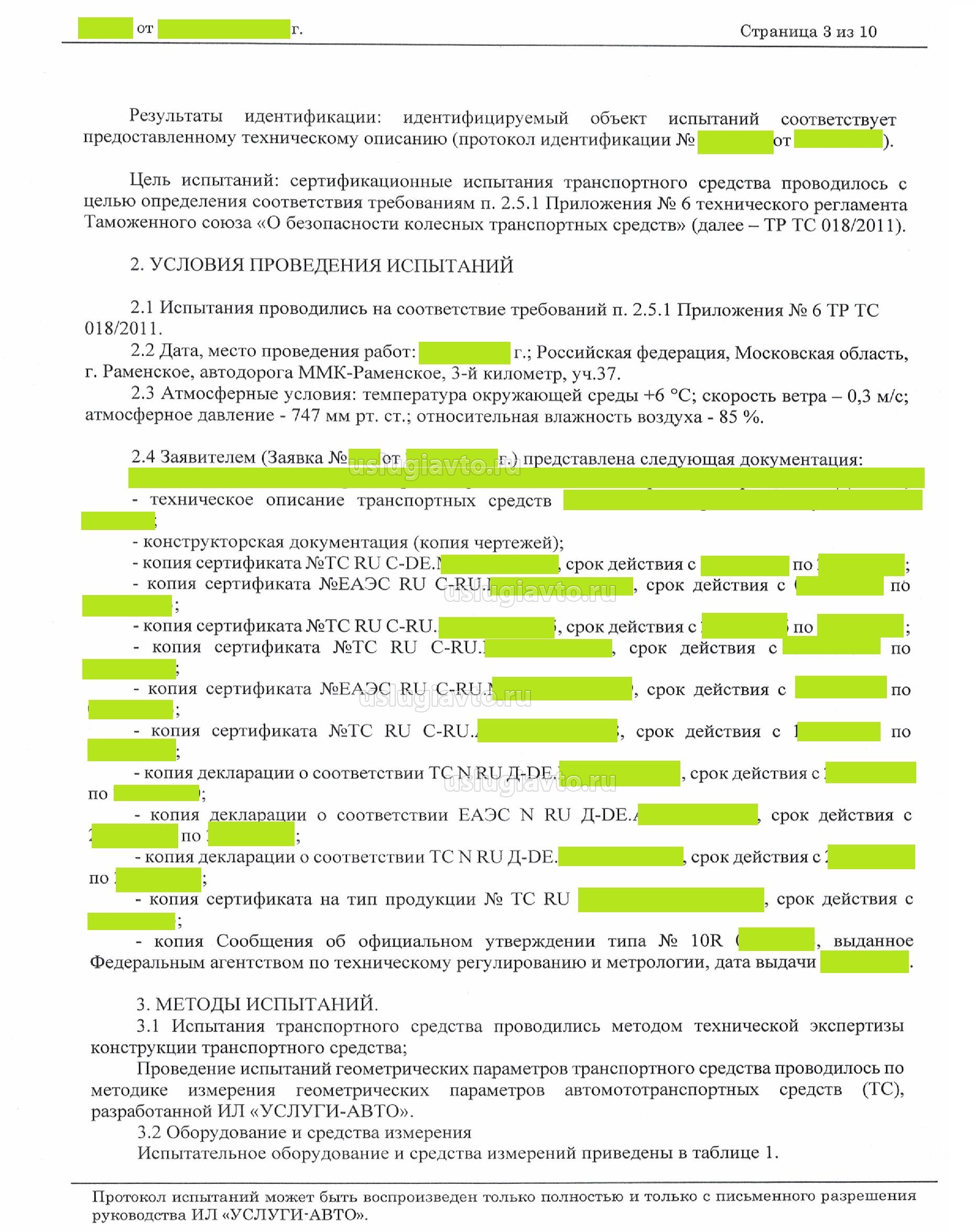 Пример протокола, оформленного ИЛ "УСЛУГИ-АВТО" на данное транспортное средство: