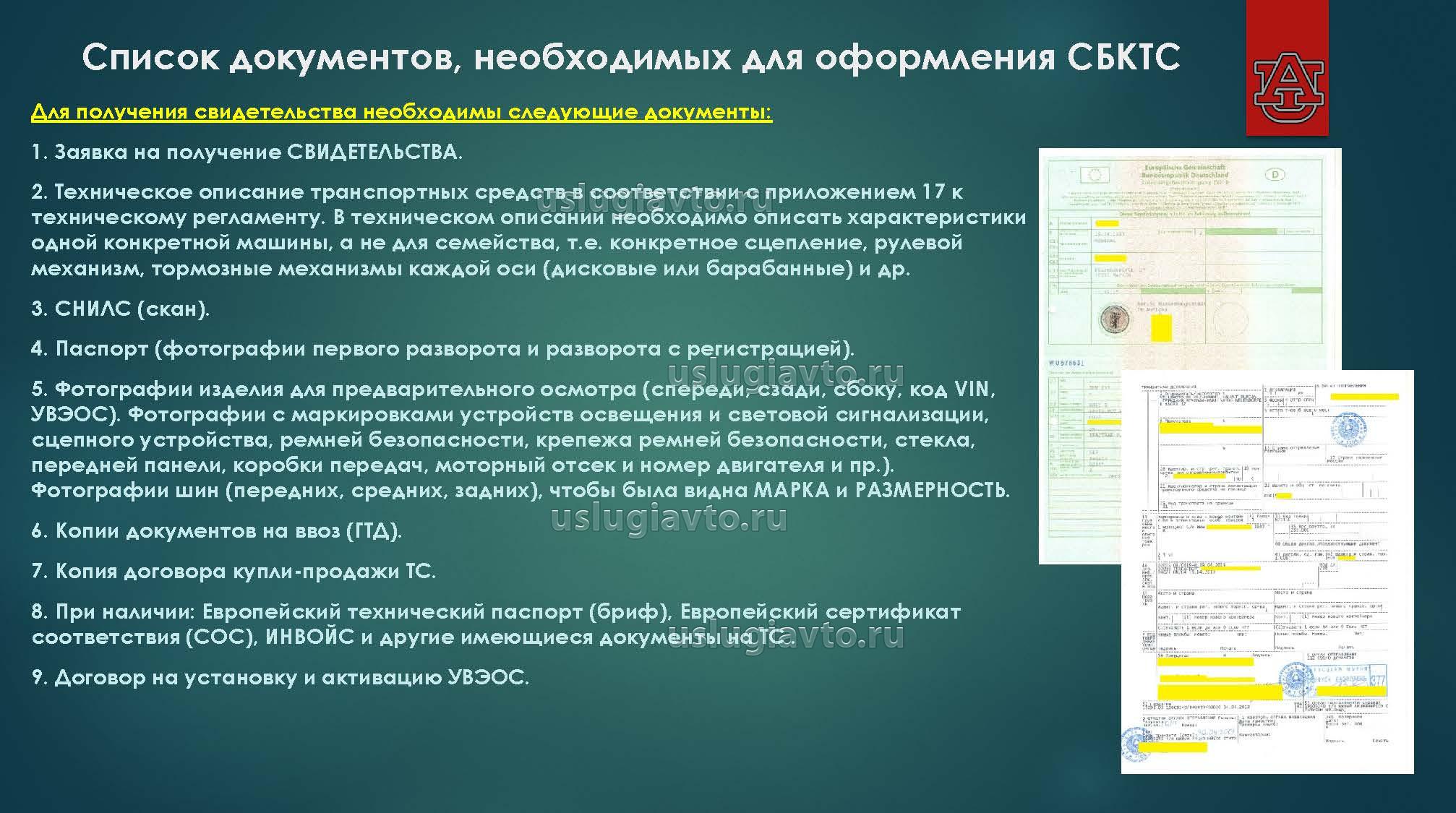 Список документов, необходимых для оформления СБКТС: