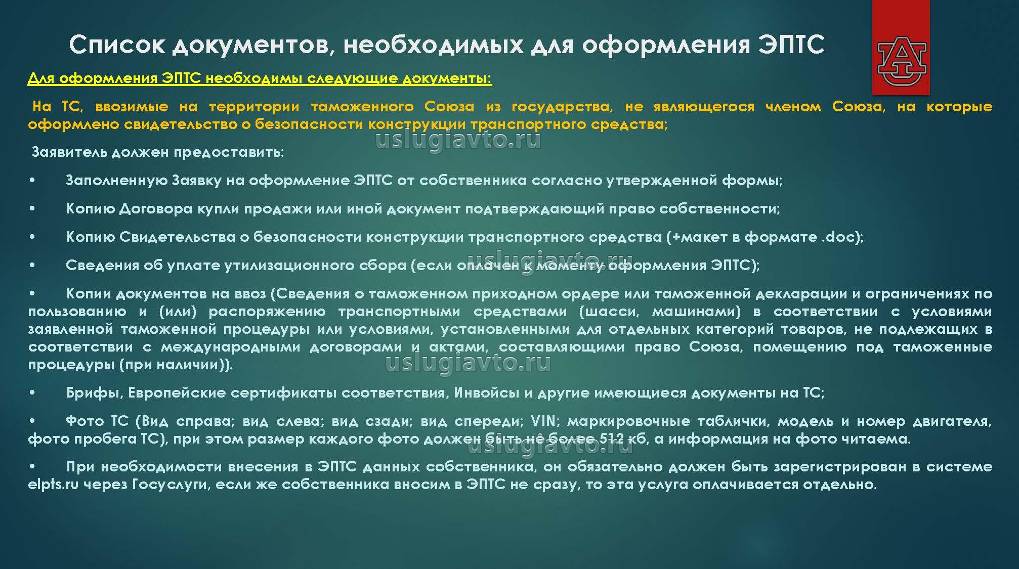 Список документов, необходимых для оформления ЭПТС:
