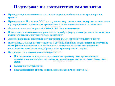 компонентов, подтверждение соответствия которых как отдельных элементов предусмотрено Правилами